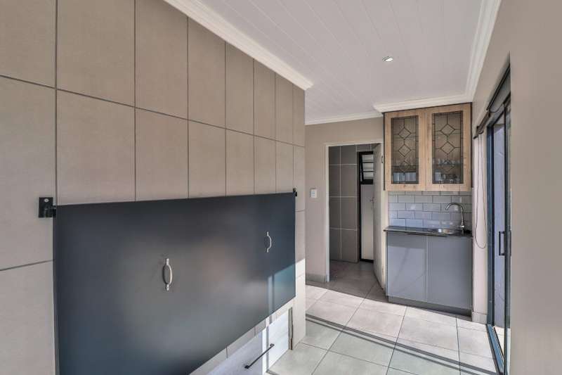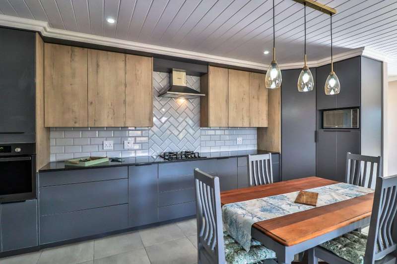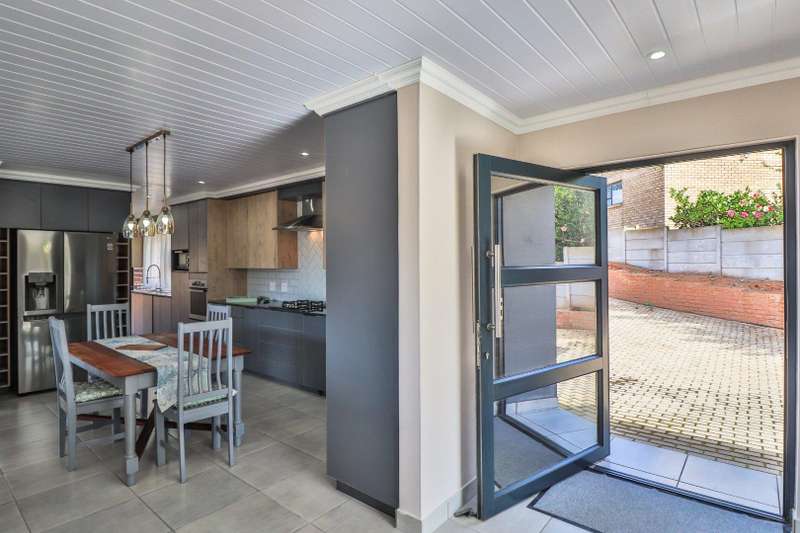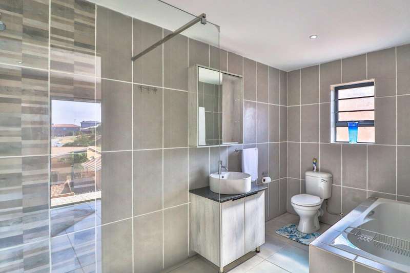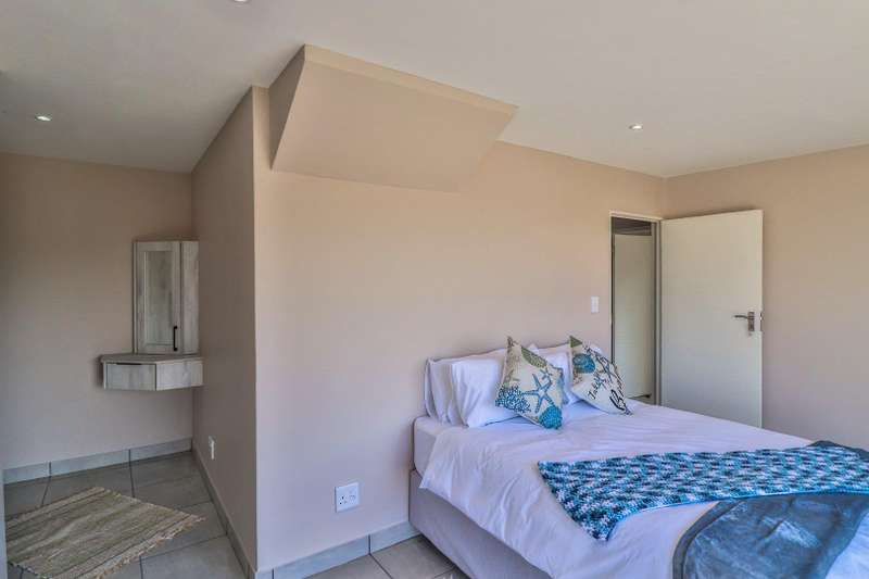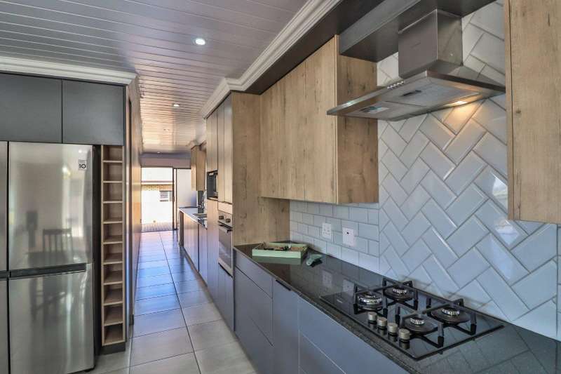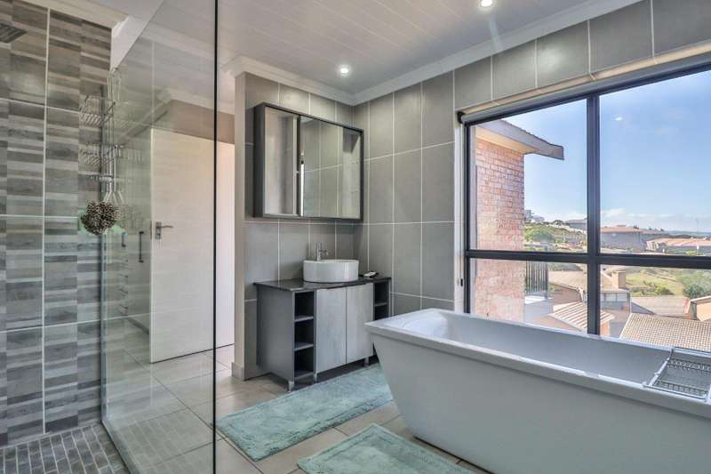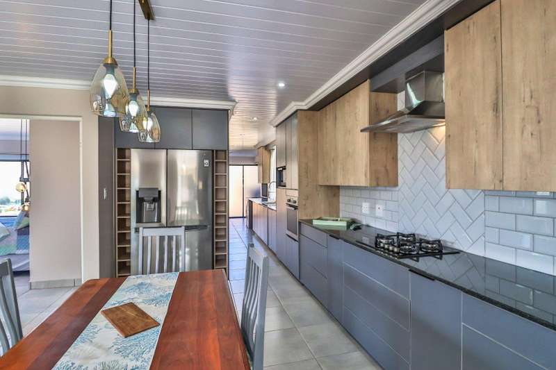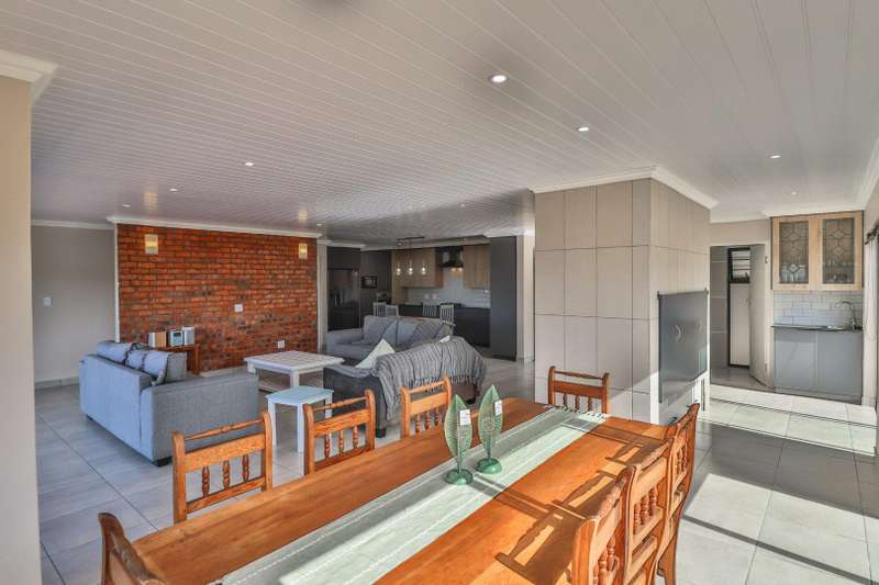 Beautiful family home in sought-after area and offers lovely distant ocean views. The house features three spacious double bedrooms and three stylish, modern full bathrooms. Designed for comfortable family living, the open plan lounge and dining area flow seamlessly into a beautiful kitchen with ample cupboard space and separate scullery. The perfect blend of style and practicality for modern living. Fully tiled throughout, the home has a natural easy flow and is filled with natural light. A generous built-in braai in the living area adds to the home's entertainment appeal. A large remote-controlled double garage completes this immaculate home. An ideal choice for those seeking a modern, low-maintenance lifestyle in a tranquil yet desirable location.