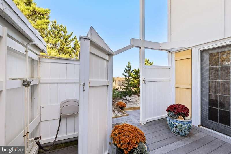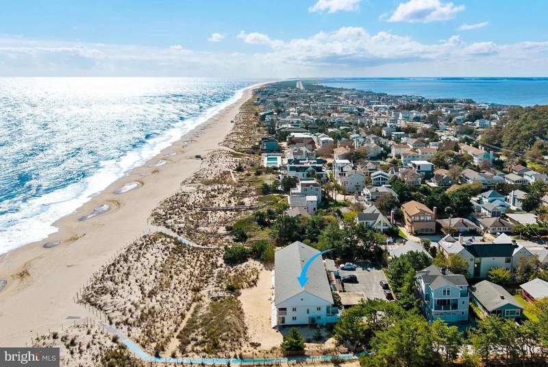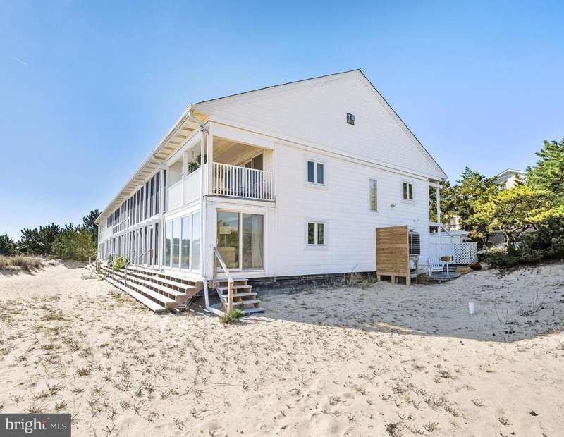 Introducing 8 Seastrand: A Rare Oceanfront Gem in Rehoboth By The Sea Welcome to 8 Seastrand, an extraordinary opportunity to own a premier oceanfront residence in the prestigious enclave of Rehoboth By The Sea, nestled within Dewey Beach. Perfectly positioned on a prized end-unit lot, this one-of-a-kind beachfront retreat offers sweeping, unobstructed views of the Atlantic Ocean and direct access to a private, secluded stretch of sand - a rarity along Delaware's beloved coast. Set within the exclusive Seastrand community, just off quiet and charming Chesapeake Street, the property enjoys a truly unique location adjacent to Silver Lake - the nation's closest freshwater lake to the Atlantic Ocean - adding a serene and scenic complement to its dramatic ocean vistas. Fully renovated just six years ago, this coastal haven blends timeless charm with modern luxury. Behind a private entry fence, discover an enclosed front patio. Off-street parking offers convenience and a sense of arrival. Inside, the open-concept living space is graced with whitewashed hardwood floors, custom solid wood paneling, and a wall of windows that frame endless ocean views and bathe the interiors in natural light. The thoughtfully upgraded kitchen is both stylish and functional, featuring custom wood cabinetry, butcher block countertops, ceramic tile backsplash, sleek GE stainless steel appliances, and contemporary fixtures throughout. The adjoining living and dining areas are anchored by a cozy propane stove, perfect for cool coastal evenings, while a dedicated beach access door ensures the sand and surf are never more than a few steps away. A chic powder room and convenient stackable laundry complete the main level. Upstairs, the primary suite is a tranquil sanctuary, with stunning ocean views and a private balcony that invites you to relax to the rhythm of the waves. Two additional light-filled bedrooms offer ample closet space and share a beautifully updated hall bath. Step outside to enjoy an outdoor shower and beachfront deck, ideal for al fresco entertaining or simply savoring the serenity of your surroundings. Additional features include a new heat pump and air conditioning system, tankless water heater, plantation shutters throughout, and a 6-year-old roof - all contributing to a turn-key lifestyle of comfort and ease. With rental income potential exceeding $100,000 annually, 8 Seastrand also presents an exceptional investment opportunity - whether you're seeking a refined coastal escape, a lucrative income property, or both. A property of this caliber, in a location this desirable, is truly a rare find. Come experience the very best of Delaware's coastline - where luxury, location, and lifestyle converge. Welcome home.