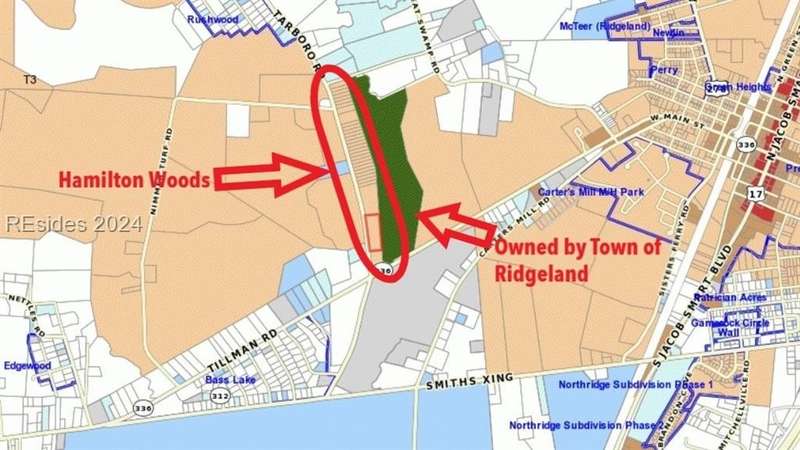 31 platted lots for sale along Tarboro Road in Ridgeland. This tract starts at the corner of Tillman and Tarboro Road and contains the entire frontage to Lynches Ford Road. Property backs up along the Great Swamp, which has been preserved by the Town of Ridgeland. Total of 36 acres. Ridgeland has planned for water and sewer to come to this area and major developers are on both sides of the property.