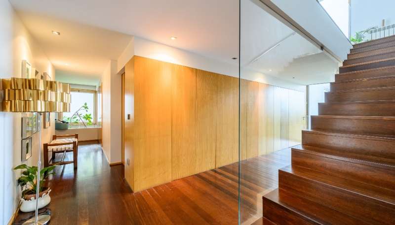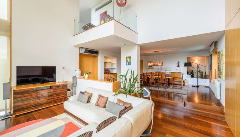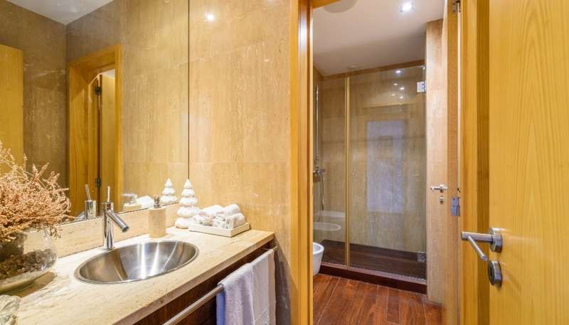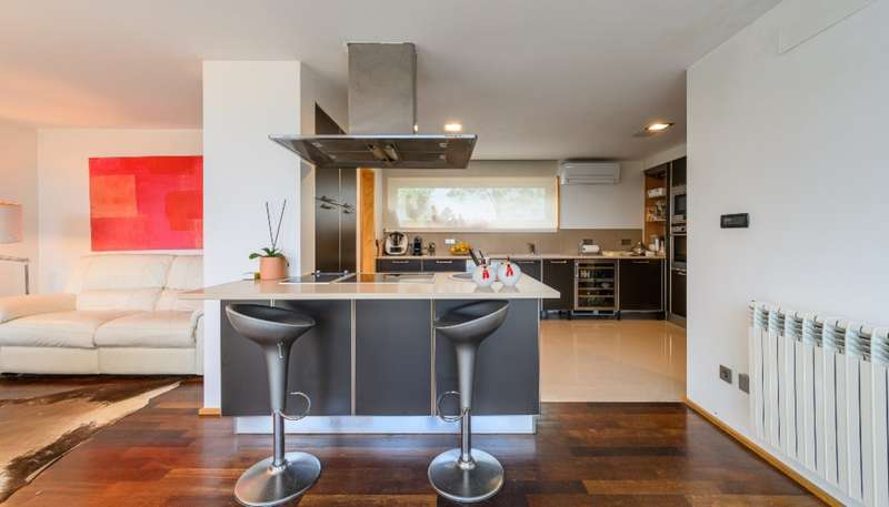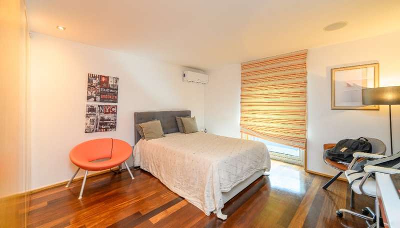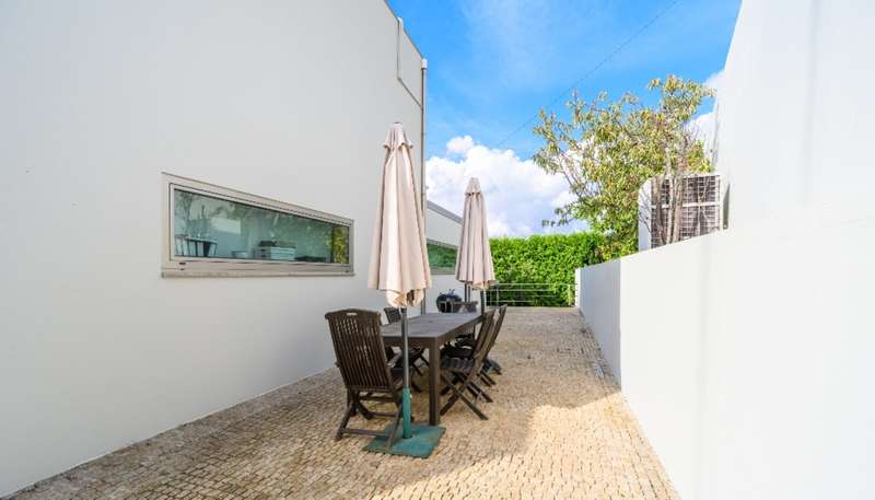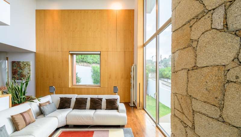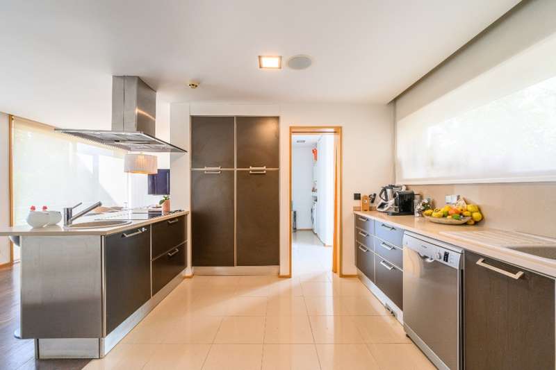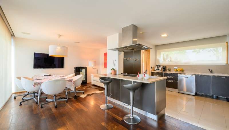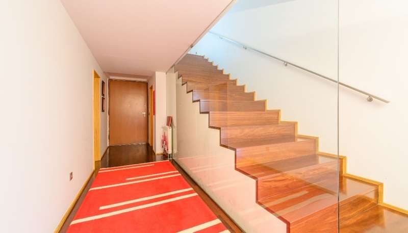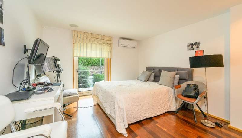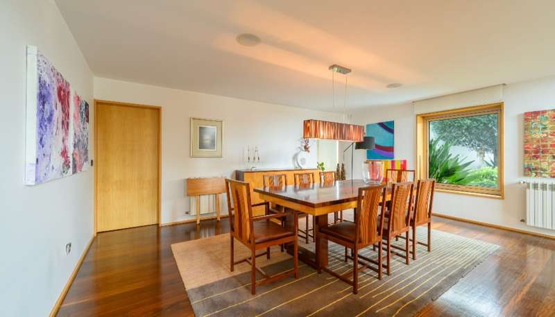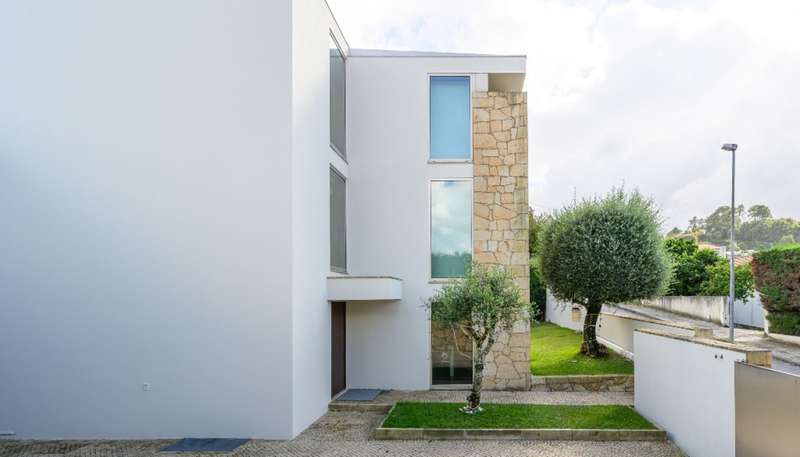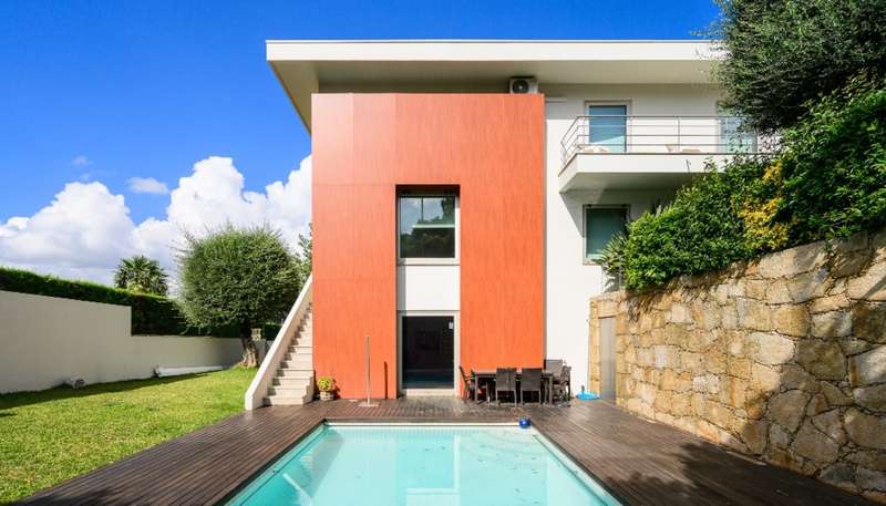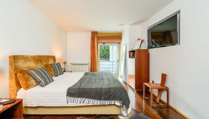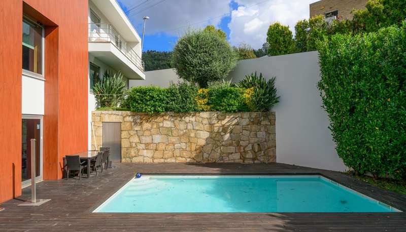 Excellent modern 4-bedroom villa for sale, with four fronts, garden and swimming pool, situated in a privileged location on the Bom Jesus hillside in Braga. This luxury residence, with 521 m2 of gross private area, is set in a plot of land of over 700 m2 and is harmoniously distributed over three functional floors where the top quality materials that create an elegant, sophisticated and welcoming atmosphere stand out. On the first floor is the main entrance with access to a large multipurpose room with a support kitchen and a direct exit to the garden and swimming pool. On this floor there is also a bathroom and a soundproofed home cinema room equipped with a Bang & Olufsen system. On the second floor there is a large living room with a sitting area and a dining area, as well as an open-plan kitchen with a generous scullery, including a pantry and laundry room. Adjacent to the kitchen is also a secluded outdoor area for dining in privacy. The floor-to-ceiling windows flood the rooms with natural light, in perfect harmony with the surrounding green landscape, and the living room stands out for its noble double-height ceiling. On this floor there is also a bedroom or office, complemented by a bathroom. On the upper floor is the intimate area, with a mezzanine over the living room, and the three main bedrooms, one of which is the master suite and the other two supported by a bathroom. All have built-in closets and windows with a balcony overlooking the pool area. Equipped with a home automation system, alarm, air conditioning, heat pump for the pool and automatic irrigation, among other high-end equipment, the villa includes a closed garage for two cars with a storage area, and it is also possible to park four more cars inside the property. In a noise-free environment, the exterior provides great privacy, being an ideal space for al fresco dining and relaxation, enjoying the green spaces, the swimming pool and the tranquillity of this exclusive neighborhood. Close to everything, less than 5 minutes from the University of Minho and 10 minutes from the center of Braga, very close to shops and services and the highway sports park. CHARACTERISTICS: Plot Area: 724 m2 | 7 793 sq ft Deployment Area: 187 m2 | 2 013 sq ft Building Area: 521 m2 | 5 611 sq ft Bedrooms: 4 Bathrooms: 4 Garage: 2 Energy efficiency: B
