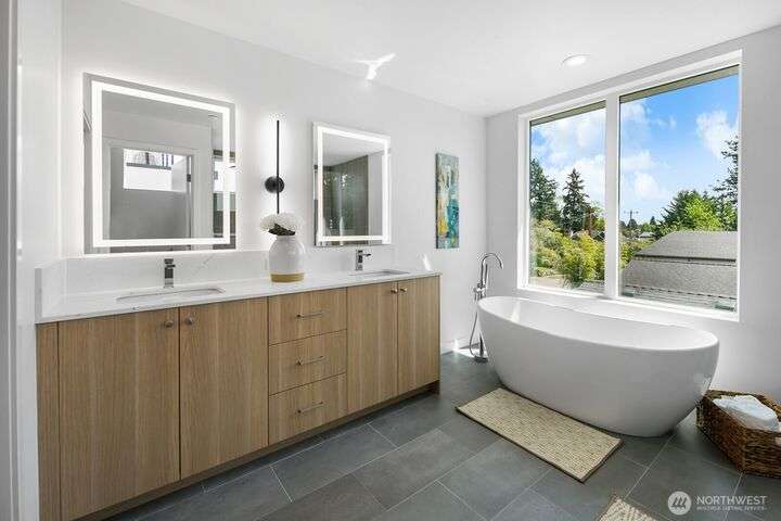 Oktoberfest Special: $25,000 builder credit—for a limited time. Location, lifestyle and limited availability—this spacious 3BR single-family home is a Cloud 9 flagship residence in North Green Lake. Open-concept main floor showcases an oversized island, contemporary finishes, light-filled living/dining, and a full appliance package for easier meal prep. The spa-inspired primary suite with custom walk-in closet is complemented by two additional bedrooms and a den/flex zone. High-efficiency heat & A/C, EV-ready off-street parking, and a compact gear garage boost daily convenience. Less than ½ mile to Green Lake and minutes to I-5, Hwy 99, LINK light rail, Kona Kitchen, Cafe Javasti and Macrina Bakery—everything you’ve been looking for.