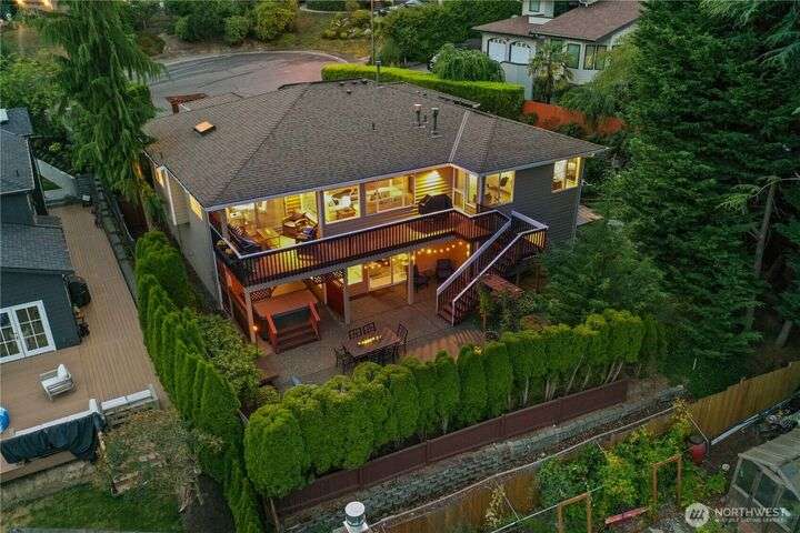 Nestled atop a quiet cul-de-sac in the coveted Juanita neighborhood, is a one of a kind, two story, custom home with many upgrades.Exterior landscaping on this large lot has been thoughtfully designed for maximum privacy and low maintenance.A work-from-home office sits off the foyer. The kitchen features upgraded stainless steel appliances, breakfast bar, & cozy nook flowing into a light-drenched great room with walls of windows & skylights. The covered upper-level deck provides outdoor entertaining year-round. Main floor primary suite includes sitting area with spa-like 5 piece bathroom. The lower level offers a separate great room, three bedrooms —including an en-suite—and updated bathrooms. Located min. to Juanita Beach Park + shopping.