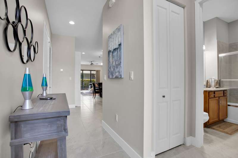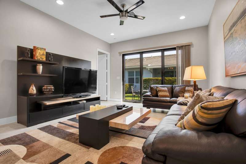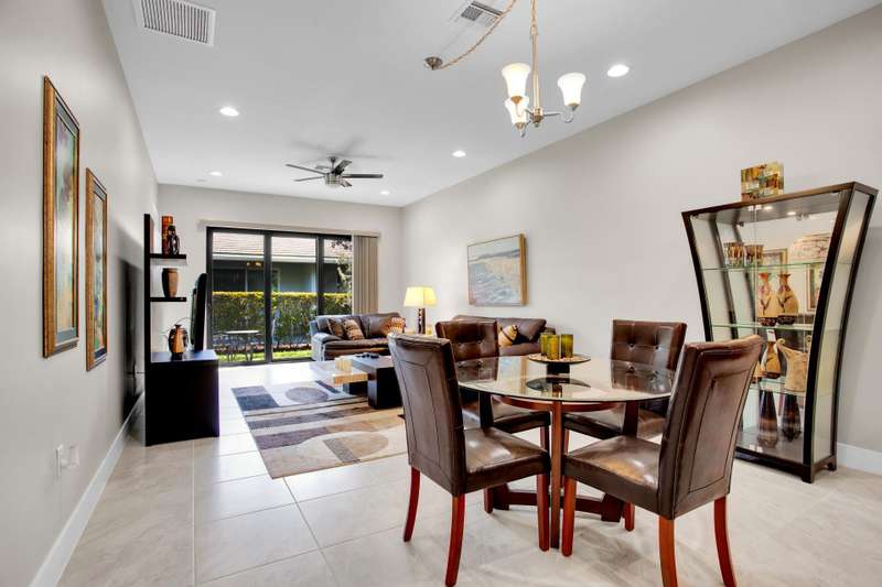Absolutely stunning 2 bedroom/2 full bath, one car garage, Hurricane windows, stainless steel appliances , neutral colors, sliding glass doors leading to patio, large walk in closet, duel sinks in main bedroom. Unit is offered furnished/unfurnished, which looks brand new no wear & tear. Resort type club house, large pool, tennis courts, theater, gym , card rooms.