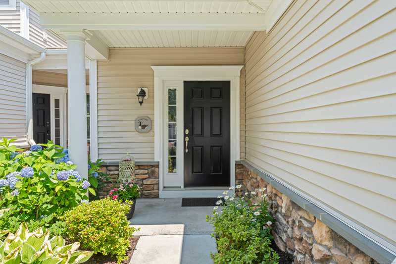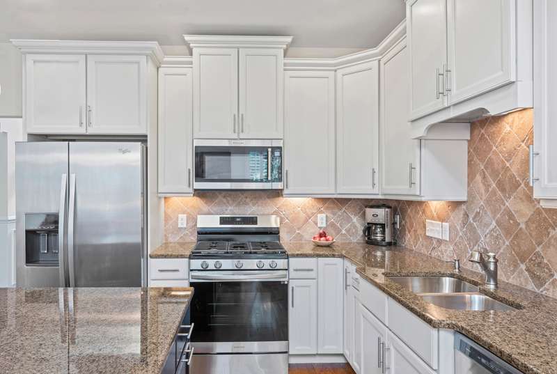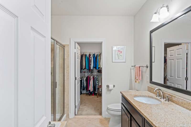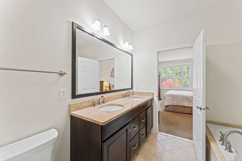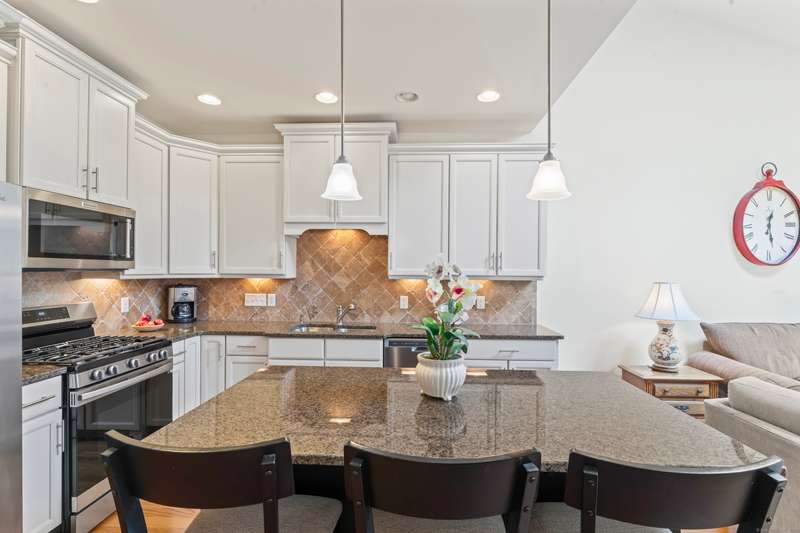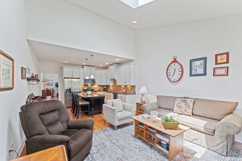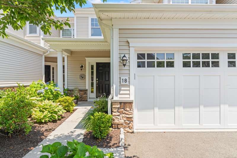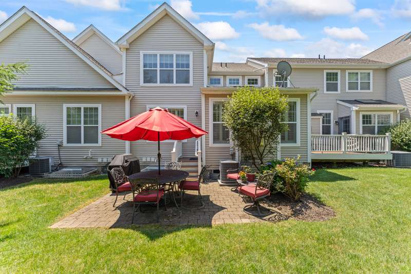 The Summit At Bethel is a beautiful life style community that offers luxury living at its best with the award winning club house at the top of The Summit! This beautiful townhome, located in the under 55 section of the community, has 3 large bedrooms & 2.5 baths. The first floor open floor plan has a nice size living/dining room combination with custom trim detail, vaulted ceilings and three large windows letting much natural light in! The chefs kitchen with custom cabinets, granite counters, stainless steel appliances and breakfast bar that seats three, is open to the family room, perfect for todays living. This large family room has a gas fireplace, much enjoyed on the cozy winter nights, a vaulted ceiling with sky light and an atrium door access to the composite porch that steps down to a nice size patio that overlooks the garden views, a wonderful spot to entertain or have your meals alfresco. The large main floor primary bedroom suite has a large walk-in closet, full bath with dou