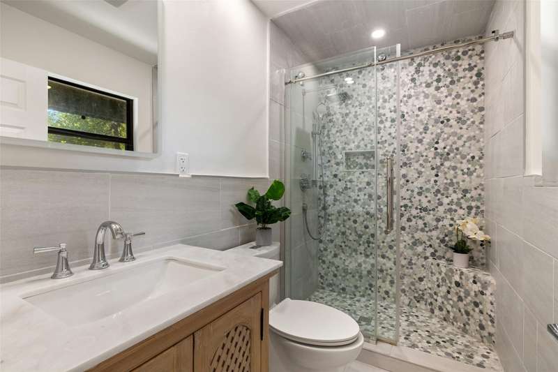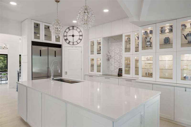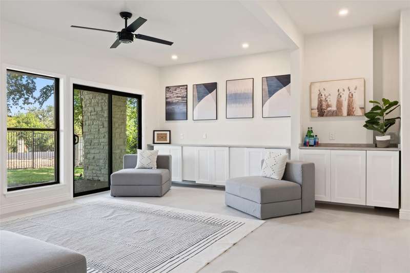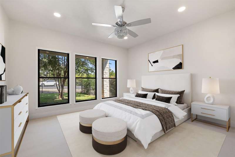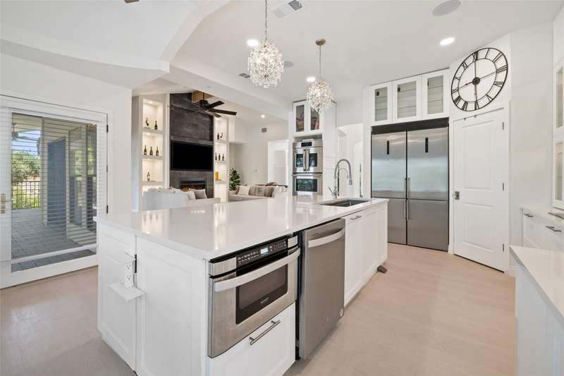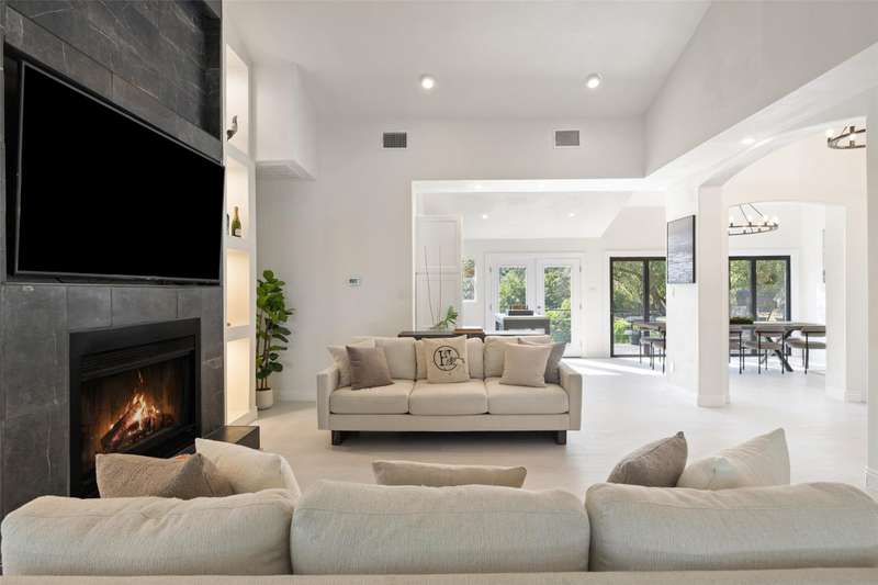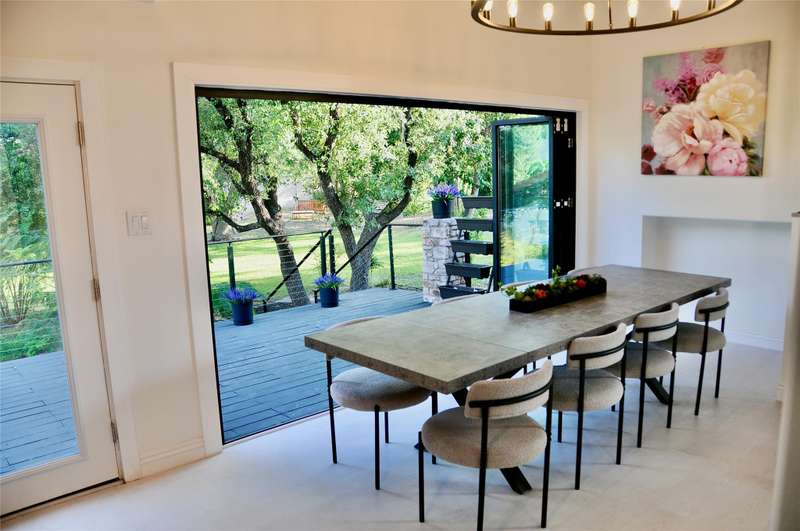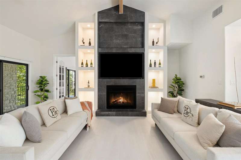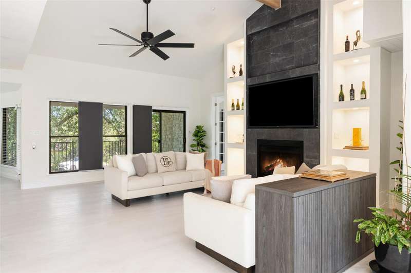 Fully reimagined 6BD/6BA home in Lakeway's prestigious guard-gated Hills community. Spanning 4,100+ sq ft on a rare double lot, this modern gem features an open floor plan with a chef's kitchen, vaulted family room with dramatic fireplace, custom bar, and dining that opens to a brand-new deck. The private primary suite offers a spa-like bath with freestanding tub, while a flexible secondary room on the same floor is ideal for nursery/office. Lower level includes a second living area and ensuite bedrooms. Multiple outdoor spaces, fenced yards, and room for a pool. Recent upgrades: new AC, dual HVAC with ionic filtration, water softener, updated plumbing/electrical, recessed lighting, enhanced security. Enjoy resort-style living with The Hills Country Club designed by Jack Nicklaus, tennis/pickleball, plus proximity to Lake Travis, marinas, dining, shopping, and LTISD schools. Low Tax Rate!! Easy Commute to Downtown!!