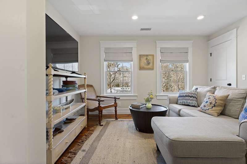 Experience the ultimate Vineyard getaway in this custom Colonial that perfectly balances sophistication with Island charm. This thoughtfully designed property features soaring 9-foot ceilings, authentic Heart Pine flooring, and a show-stopping gourmet kitchen complete with professional-grade Viking appliances, handcrafted soapstone countertops, and a statement Carrara marble island. The spacious floor plan offers four bedrooms and four full bathrooms, complemented by two powder rooms and a fully finished lower level for additional entertainment. Separate guest quarters above the garage provide visitors with their own private retreat, featuring a dedicated living room, convenient wet bar, and private deck. Outdoors, a mahogany deck overlooks beautifully landscaped gardens, with an outdoor shower perfect for post-beach rinses before alfresco dining under the stars. Conveniently located just a short distance from downtown Edgartown's acclaimed restaurants, boutiques, and harbor, this property offers a quintessential Vineyard experience and an established rental history. Note: Additional finished space of approximately 700 SF in the finished basement. (not included in total on list sheet)