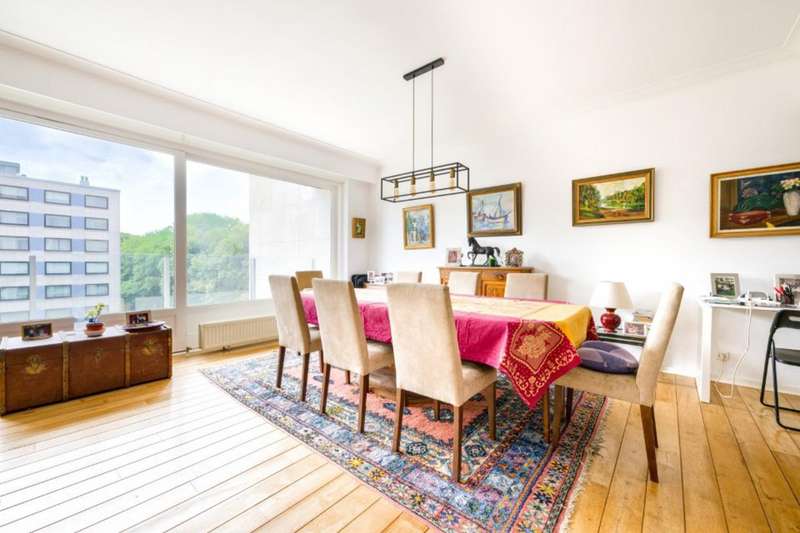 Set back from Churchill Avenue, on the 4th floor of a luxury building in Parc Kennedy, this elegant renovated apartment of ± 150 m² charms with its unobstructed views, beautiful terraces and access to a private park with swimming pool. The property offers a large bright living room, a fitted kitchen, three bedrooms, two bathrooms and plenty of storage space. The electrical installation is compliant, and the building has recently undergone major renovation work: renovated façade, refurbished swimming pool, garages currently being renovated. A cellar and a garage are available at an additional cost (€40,000). EPC D A privileged, green and secure setting, a stone's throw from the amenities of Uccle.