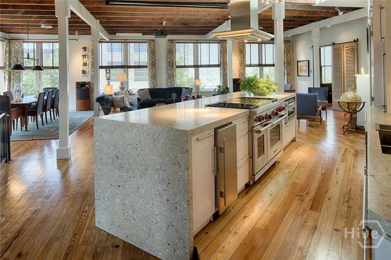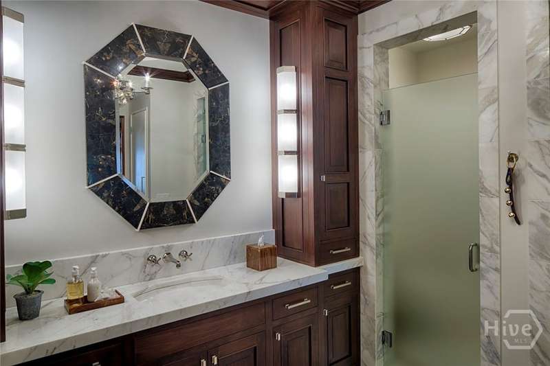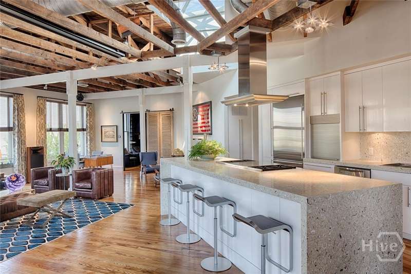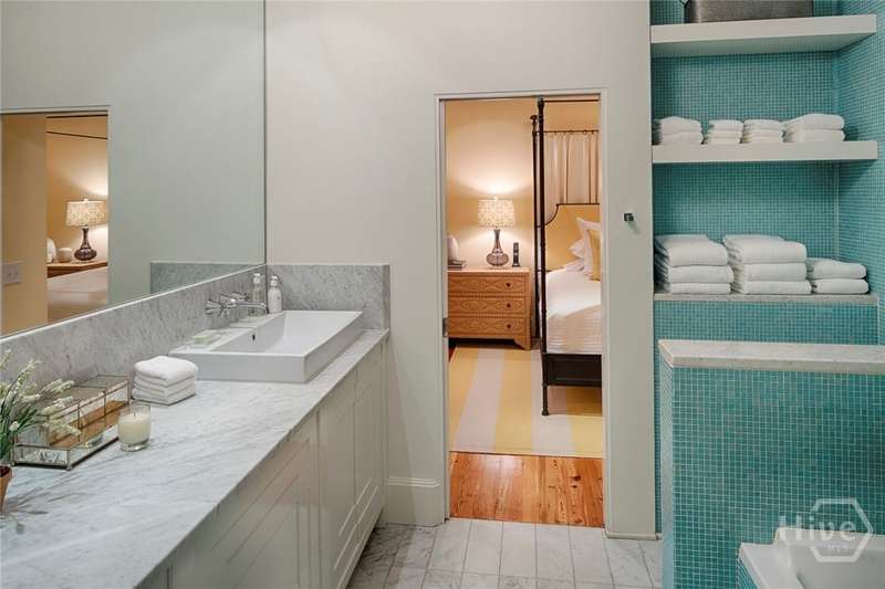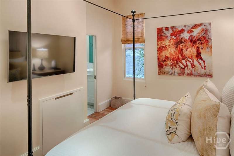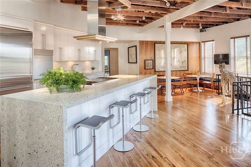 This chic 2-story, mixed-use building is ideally located in a prime location at the corner of Broughton & Lincoln Streets and offers the ultimate commercial space on the main level plus a private urban loft on the second floor. The ground floor is currently occupied by a successful restaurant and long-term tenant and offers an incredible investment opportunity. The top floor features a stylish, private 5 BR/4 BA residence that is an active short term vacation rental that has been featured in Garden & Gun and includes a garage and private elevator. Soaring ceilings complement a large living/entertaining space plus a chefs kitchen with top-of-the-line appliances by Miele, Sub-Zero & Wolf and custom tabby concrete countertops. A grand en suite primary bedroom boasts a marble bath & luxury soaking tub with oversized custom closet. Additional features include a laundry room with full-size washer/dryer/sink, a walk-through utility/pantry, dining nook & built-in wet bar.