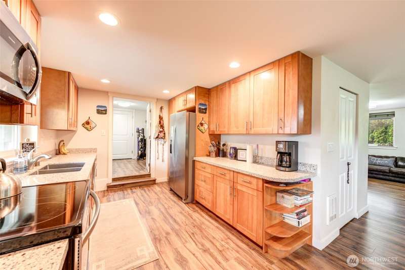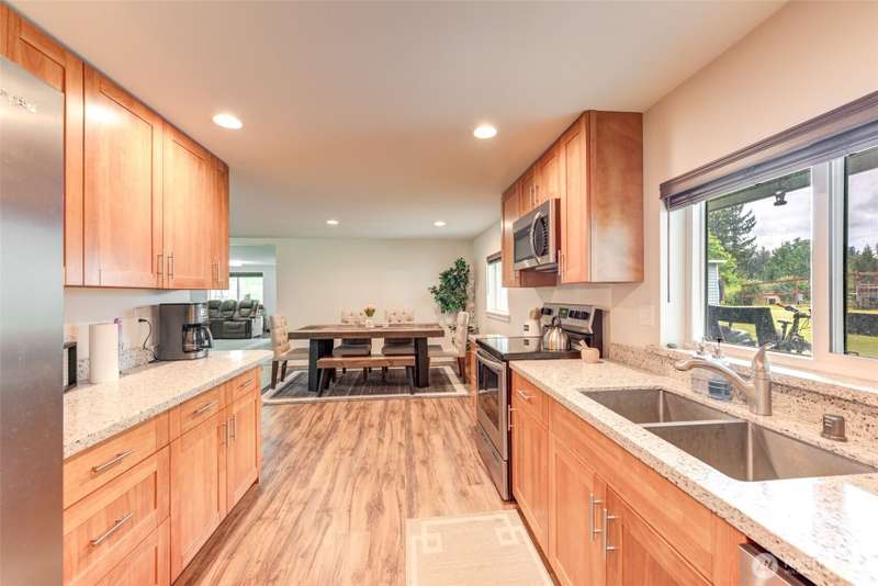 Nestled on a private corner lot, this beautifully updated 3-bed 2.5-bath home sits on just over 2 acres, offering both comfort & versatility. Featuring over 2,300 sq ft of living space, the home showcases newer flooring, trim, doors, & newer roof. The stunning kitchen offers granite counters, rich wood cabinetry, & all appls included. The main floor boasts a large bonus room, 1 full and ½ bath, a huge pantry, massive storage, & spacious laundry room leading to the oversized 3-car garage, a mechanic’s dream w/ abundant space for tools & projects. Upstairs hosts 3 bedrooms & a full bath. Multiple outbuildings, including a powered shed, add flexibility. Plenty of room for a shop, barn, or animals. No HOA & quick access to I-5 and Hwy 9!
