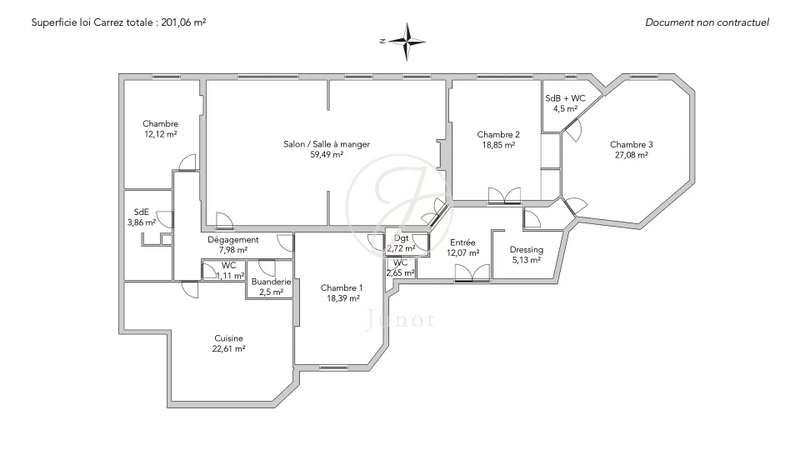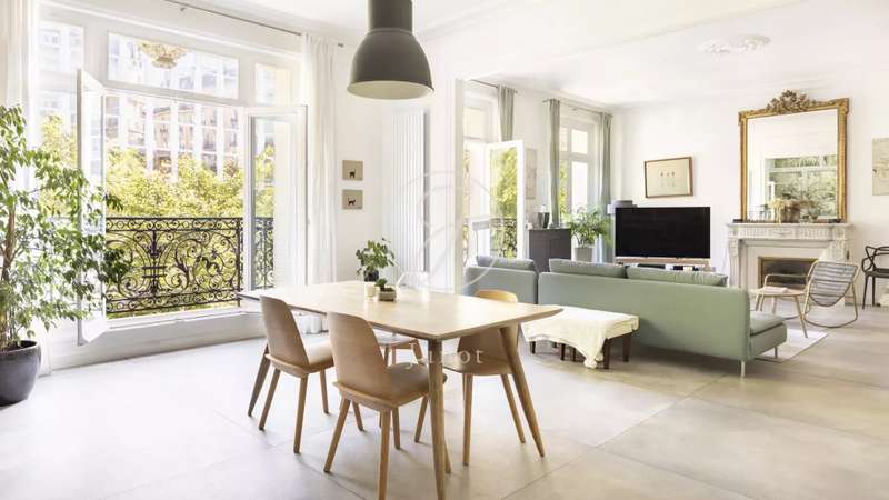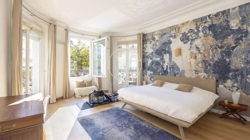 In a sought-after area, in the heart of an elegant Haussmann building, superb 201.60sqm loi Carrez family apartment on the second floor with elevator. Its star-shaped layout features a vast double living-dining room with 3.27m high ceilings, a master suite with en suite bathroom and dressing room, three other spacious bedrooms, a fitted kitchen/diner, a shower room, a laundry room and two guest toilets. Exceptionally spacious and bright. In excellent condition, it boasts tree-lined views and has retained all its original charm. Live-in janitor.