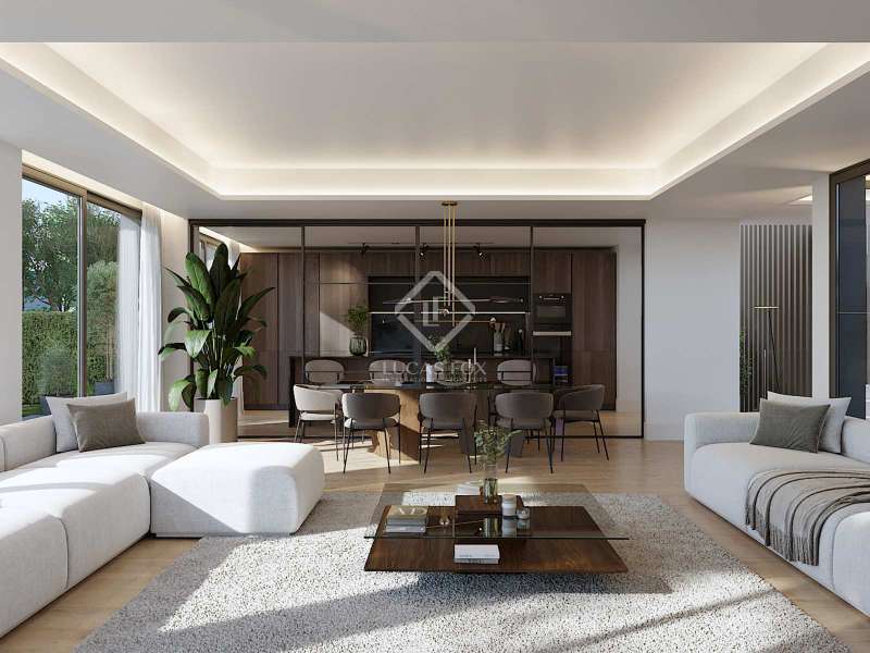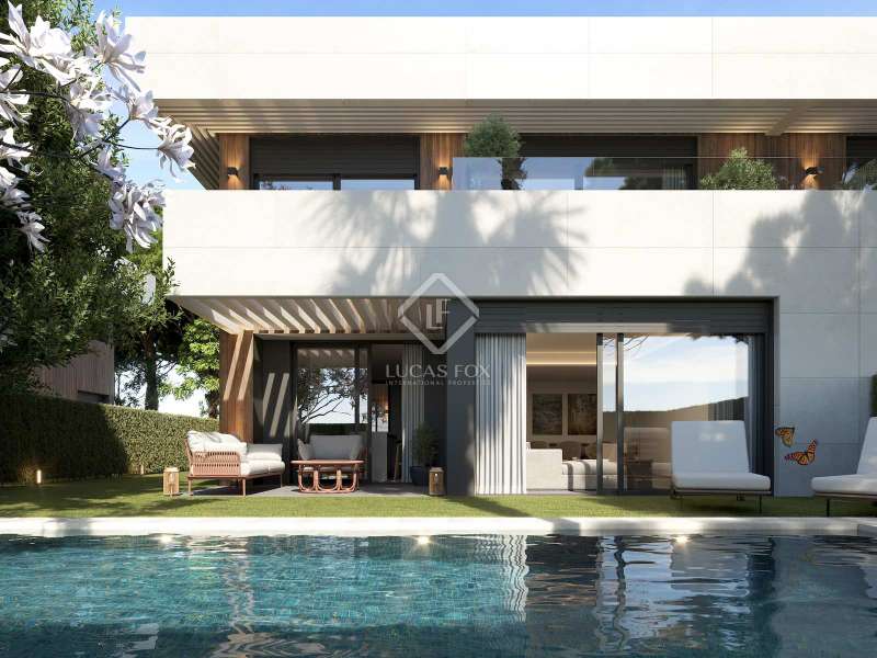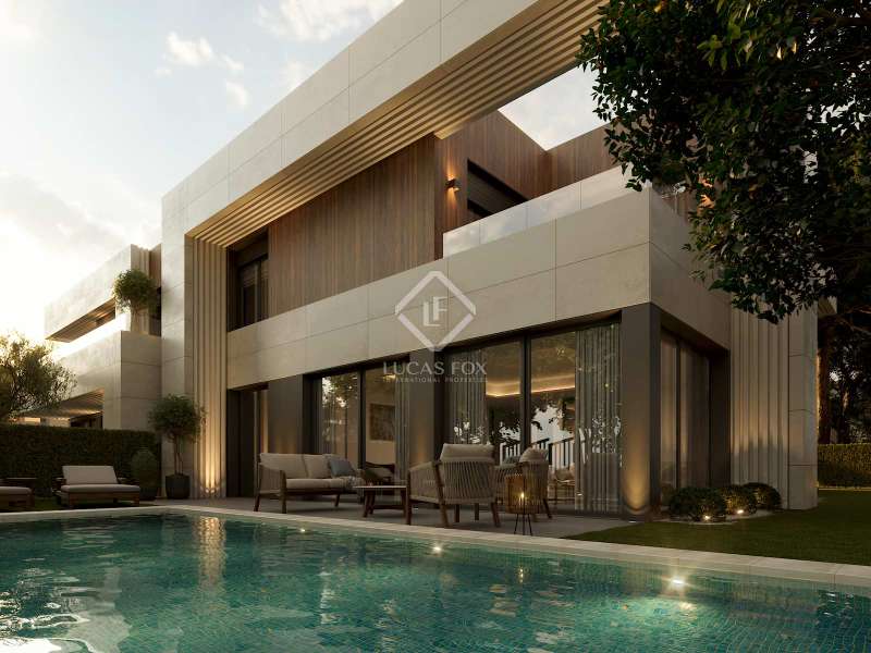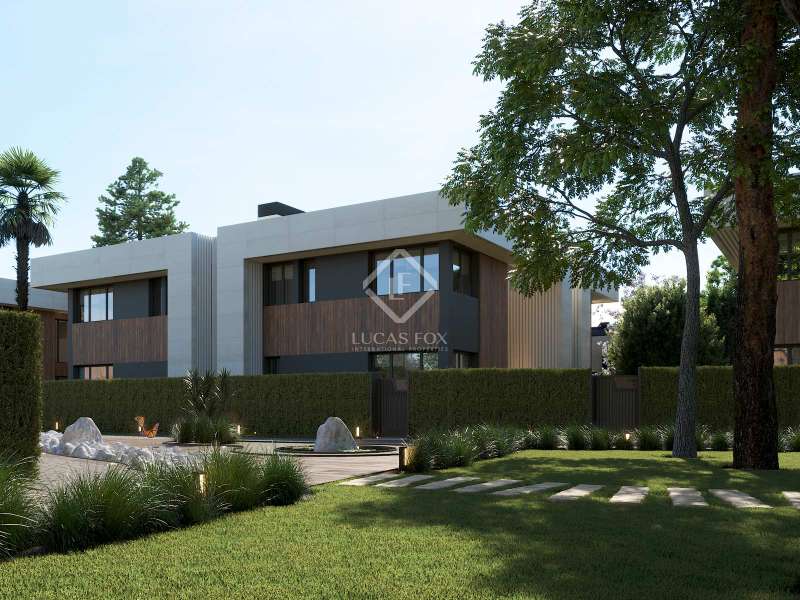 Lucas Fox is proud to present Tribeca Pozuelo, a boutique gated development of 10 luxury semi-detached villas, with a single access and security gate at the entrance, in La Pinada, one of the best new areas of Pozuelo. The development combines all the advantages of living in a residential area close to the centre, but with the greatest tranquillity and security. 70% sold. Construction is progressing at a good pace. Tribeca Pozuelo offers exclusive villas of 480 m² built with garage included and with an exceptional design. They are equipped with exclusive private gardens with swimming pool on plots of 520 m². The homes are distributed over three floors and have six bedrooms and five bathrooms, although it is possible to customize the layout according to the personal needs of each client. On the main floor , there is a magnificent entrance hall that leads to the rest of the rooms on the floor. There is a large living-dining room with large floor-to-ceiling windows that allow in plenty of natural light and give access to the exterior area, with a porch, terrace and swimming pool. There is also a fully equipped kitchen with the best appliances, a ensuite bedroom that can be used as an study and a guest toilet. The first floor houses the night area, with the main bedroom with dressing room, bathroom and private terrace, as well as three secondary bedrooms with two complete bathrooms. The lower ground floor offers a service area with a bedroom with a full bathroom , a storage room, a utility room and a garage for two cars. Exterior, there is a garden area, with grass and various plants and trees, as well as a porch, perfect as a chill-out area to relax and enjoy, and a wonderful swimming pool. In addition to featuring a modern and avant-garde design, all villas are fitted with the highest quality, with fully equipped kitchens and high-quality finishes that guarantee optimal energy efficiency. La Pinada stands out for the large number of new, high-quality villas that have been built in the last five years. The license has already been granted and construction is now starting, so the delivery date is estimated for Q2 2025. These wonderful villas will impress the most discerning of clients. Please contact us today for more information or to arrange a viewing of the plots. Highlights: - 6 bedroom, 5 bathroom villas - Modern design - Exterior space with porch, garden and swimming pool - Excellent qualities - Privileged location - Private garage
