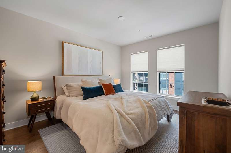 Welcome to The Copley 2 at Downtown Crown! This IMMACULATE Two-Bedroom, 2 Bath plus Den in Copley 2 Shows like a New Unit! It was used as an office and never lived in as a primary residence. Copley 2 is the most sought after of Copley buildings as it is surrounded by courtyards and buildings on either side reducing the traffic and noise surrounding your unit. This condo perfectly blends luxury, convenience, and comfort. From the secure lobby with elevator access, to the rare courtyard-facing balcony, every detail is designed for modern living. Included are 2 premium parking spaces (86, 87) and 2 storage unit across the hall, and custom electronic blinds. Inside, wide-plank hardwood floors lead to an open-concept kitchen, dining, and living area with soaring ceilings and floor-to-ceiling windows. The chef's kitchen features soft-close cabinetry with deep storage, quartz countertops, and stainless steel appliances. A versatile den with barn door and recessed lighting makes the perfect home office. The spacious family room flows to a private balcony overlooking the landscaped courtyard-ideal for morning coffee or evening relaxation. The primary suite offers two custom walk-in closets and a spa-inspired bath with a dual-sink vanity, frameless walk-in shower, and laundry closet with high-efficiency washer/dryer. The second bedroom features oversized windows, a custom closet, and easy access to the full hall bath. The Copley is a secure, well-maintained building with a low $445 monthly fee (including water). Residents may also opt into The Retreat amenities for $300/year, with access to a pool, tennis courts, bocce, playgrounds, and clubhouse. All of this is just steps from Harris Teeter, Starbucks, Ruth's Chris, Coastal Flats, Lifetime Fitness, Lululemon, and more, with nearby Rio offering additional dining, shopping, and entertainment. Commuting is effortless with quick access to I-270, I-370, and the ICC, plus a free shuttle to Shady Grove Metro. Love where you live-this rare Copley gem truly has it all!