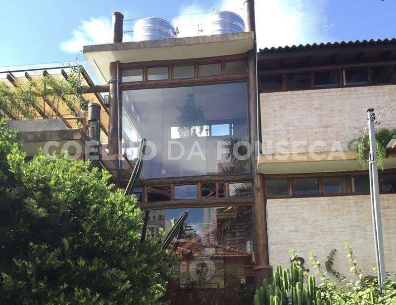 Sobrado de dois andares, face norte, muito iluminado. São 3 suítes, duas com varanda e closet, todas com ar-condicionado. Rooftop panorâmico com fogão à lenha e jardim suspenso. Estilo rústico, combinando madeira, vidro, alvenaria e ferro. Localização super tranquila. Venha conhecer!