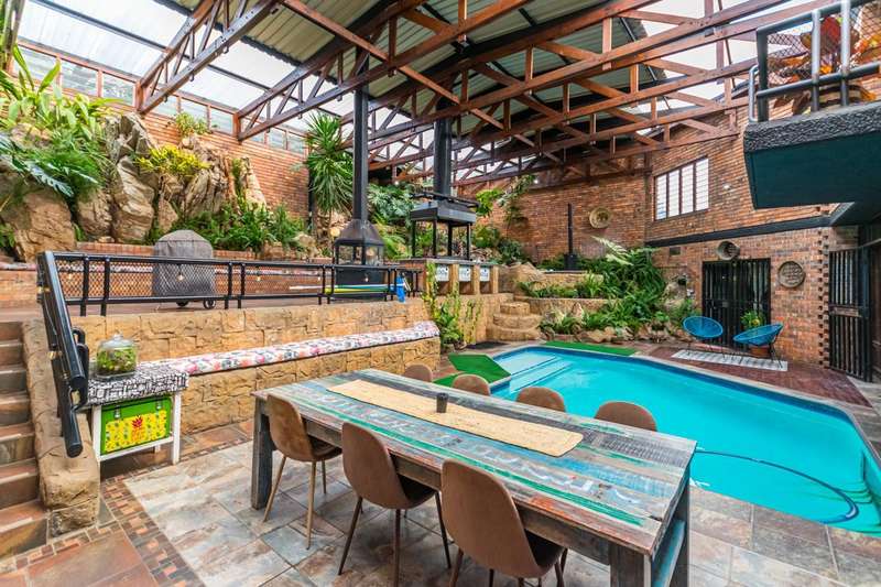 The Krugersdorp Mansion.... This Iconic home enters the market.... Yes, you read that right?Ǫ this home has its very own lift, making everyday living easy and convenient. Perfect for grocery shopping days, effortless movement between levels, or for those who prefer not to tackle stairs. Winner of ?Ç£House of the Year Award?Ç¥ in 1991 Architectural masterpiece by Dry & Joubert Built by GHR Construction Property Highlights: 6 Bedrooms & 7 Bathrooms 4 Stories, each with its own unique design and feel Master Penthouse Suite on the top level: open-plan, private balconies, aircon, rooftop access, walk-in closet, and luxurious en-suite overlooking the indoor pool. Rooftop access with panoramic valley views... Indoor pool as the centerpiece, creating seamless flow from the living and entertainment spaces. Living & Entertainment: Main living area with open-plan TV lounge, family room, built-in bar, multiple balconies & breathtaking views Designer kitchen with 3-tone colour finishes, Smeg built-in appliances, solid wood countertops, double fridge, prep bowl, scullery, pantry, and breakfast nook. Kitchen flows directly into the indoor pool area for true lifestyle convenience and everyday ease. Indoor entertainment paradise: braai room with pizza oven, gas braai, jacuzzi & rock-inspired finishes Big balconies at every turn for all-year enjoyment. Garages & Parking: 3 lock-up garages with direct home access Extra 2 lock-up garages for smaller vehicles, workshop, bikes or trailers Ample guest parking Bachelor flats & Multi-Purpose Options: 2 Bachelor Flats: One with a separate entrance (ideal for rental income, extended family, or private guest suite) with its own kitchen, bathroom, bedroom, and lounge The second integrated into the main home ?Çô an entire floor with bedrooms, bathrooms en suite, dining and kitchen, offering versatility as another living wing. This home truly adapts to your needs ?Çô from large families to guesthouse opportunities. Energy & Water Efficiency: 3 Solar geysers & 1 gas geyser Solar system with 24 panels & 3 batteries 3 JoJo water tanks, borehole, irrigation Pre-paid electricity Location: Close to top schools including Ho?½rskool Noordheuwel, Krugersdorp High, Monument Primary & Laerskool Kenmare. Easy access to major routes: N14, Ontdekkers Road & Robert Broom Drive. Why Compromise? This is not just another home ?Çô it?ÇÖs a statement of architecture, design and lifestyle. From rooftop views to indoor pools, from luxury entertaining to family living, nothing compares. Book your exclusive viewing today!