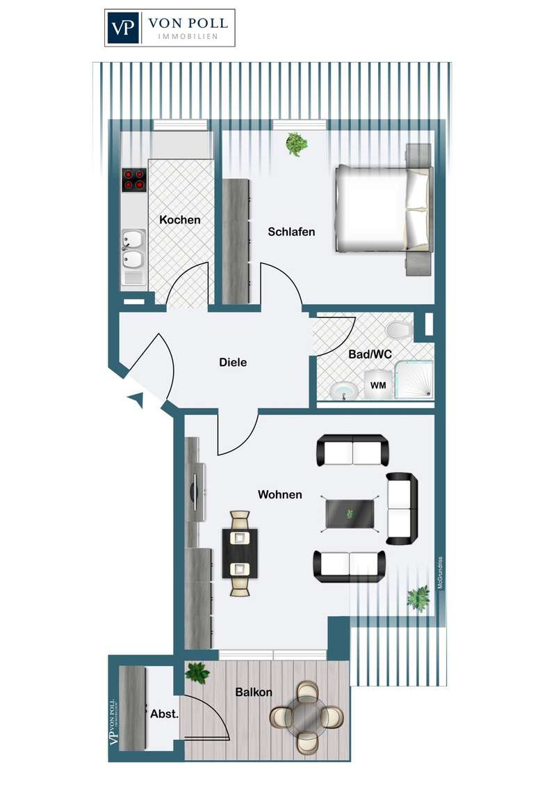 Right at the top, completely private - living with the peace factor. The apartment is located on the top floor and offers a quiet, sheltered residential area away from the noise of the house - ideal for anyone who appreciates privacy and a real "living upstairs" feeling. Here you can live undisturbed, enjoy distance from the hustle and bustle of everyday life and benefit from a cozy, secluded living ambience that can only be found at the very top. This 2-room apartment in the west of Erlangen offers exactly what you need for everyday life: an open-plan living area with access to the balcony, a separate kitchen with built-in appliances and a bathroom with shower and washing machine connection. The bedroom can be easily furnished without sacrificing space. The apartment has its own lockable cellar room, a covered bicycle parking space and a parking space in the adjacent parking garage. Convenient parking, short distances, no searching for a parking space. With approx. 53.82 m² of living space and an energy consumption of 78.5 kWh/(m²-a) - class C, the apartment is solidly furnished and in a good energy position. The location offers short distances to shopping facilities, bus connections, Siemens and university locations - live quietly, be everywhere quickly. Ideal for owner-occupiers who want uncomplicated living - and for investors looking for an apartment that rents well. Some images have been digitally furnished and are for illustrative purposes only. The furnishings are not part of the offer. Would you like to find out more? Then simply request the full exposé or call us directly on 09131 82 89 000.