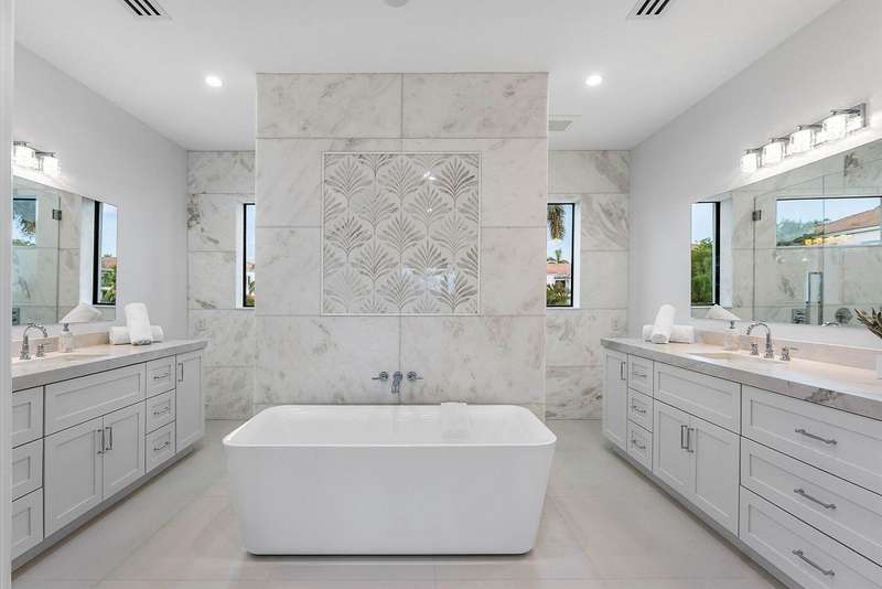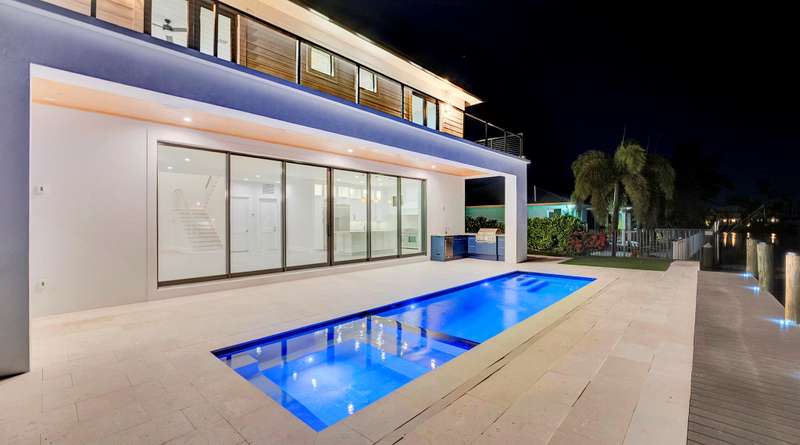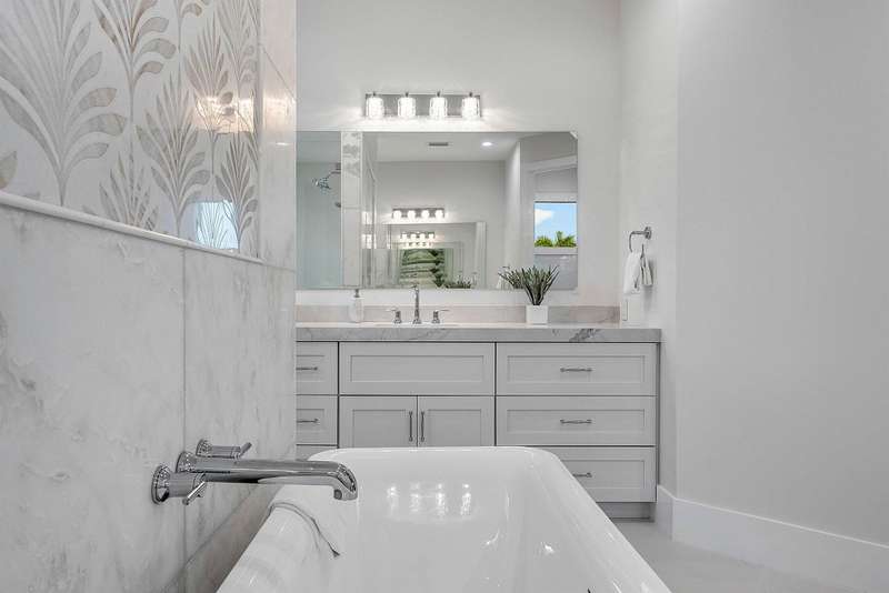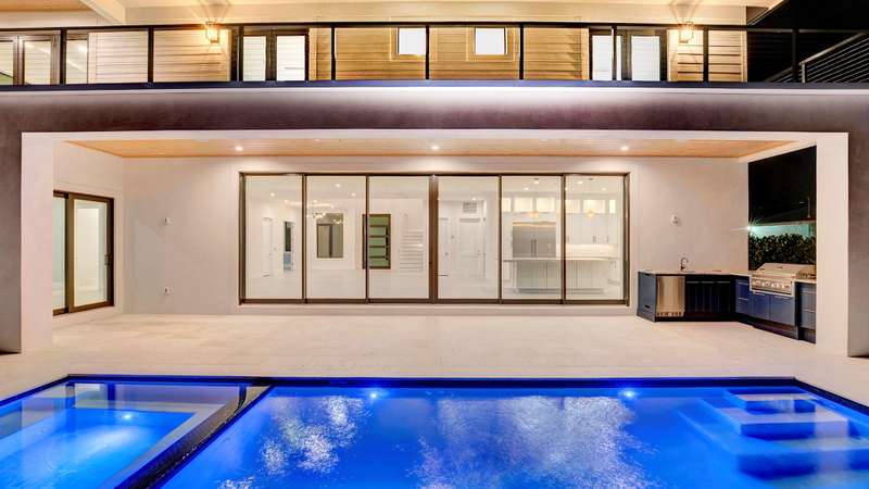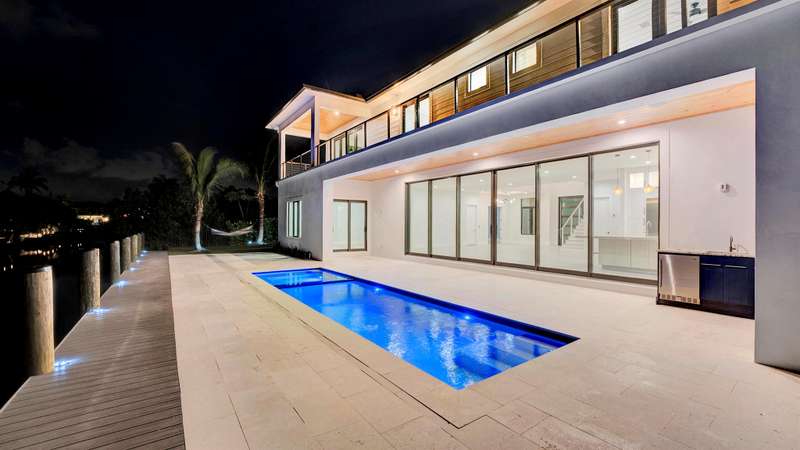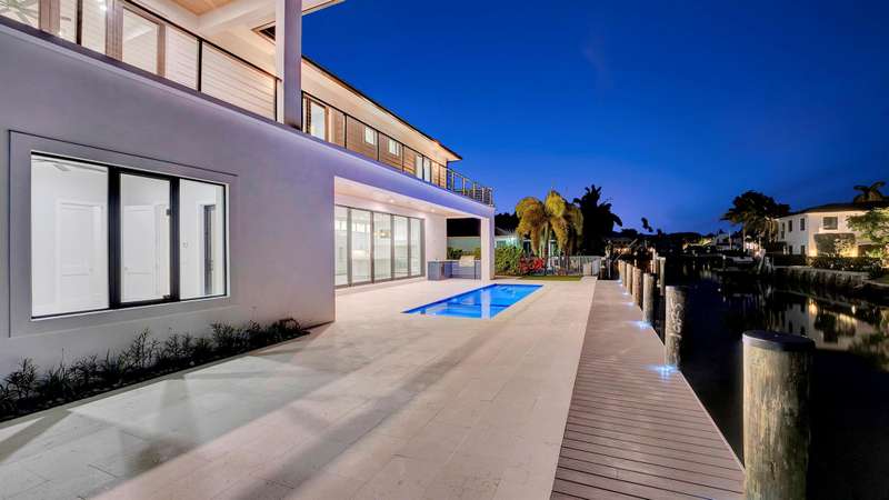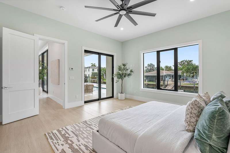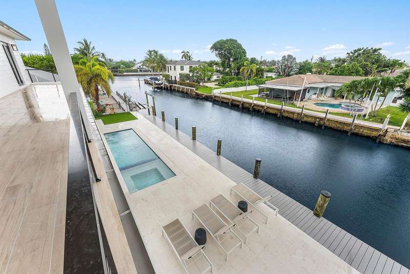 Welcome to 101 feet of direct waterfront on a private road in unincorporated Delray Beach's coveted 33483. This brand new residence offers a new seawall and dock, 5 bedrooms, 7 bathrooms and 5644 total sqft (4621 under air) with thoughtful spaces for work, play, and relaxation.Beautifully designed kitchen featuring a full Thermador appliance suite--6-burner dual fuel range with griddle, double oven, and sleek finishes flowing effortlessly into the expansive living and entertaining space where natural light pours in from every angle.Giant pocket sliders disappear like a curtain of glass blending indoor comfort with outdoor living. Step onto the covered loggia with a full summer kitchen, built-in grill, bar seating, cabana bath and outdoor shower--perfect for entertaining.