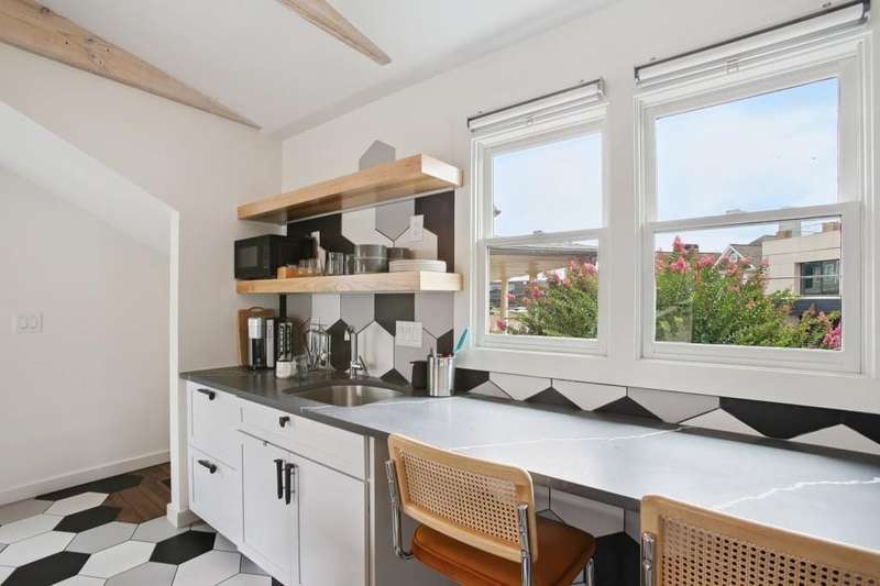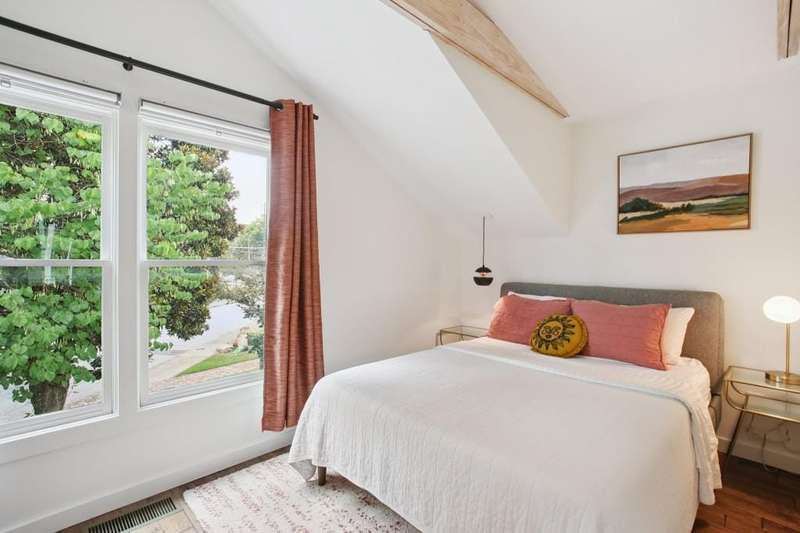Tucked away with its own private entrance, this beautifully designed 1-bedroom, 1-bathroom carriage house offers comfort, character, and flexibility-perfect for short-term rentals, guests, or extended stays. Soaring vaulted ceilings with exposed wood beams create a warm and airy atmosphere, complemented by rich hardwood floors throughout. The thoughtfully appointed layout includes a cozy living area, a well-equipped kitchenette, private laundry, and a spacious bedroom with ample natural light. The bathroom is stylish and functional, completing this turnkey space. Available fully furnished, this carriage house is move-in ready and income-producing from day one-an excellent opportunity for investors, homeowners looking for flexible guest space, or anyone seeking a detached, self-contained living experience in style.