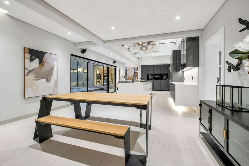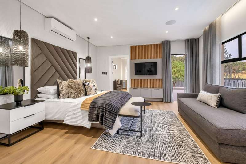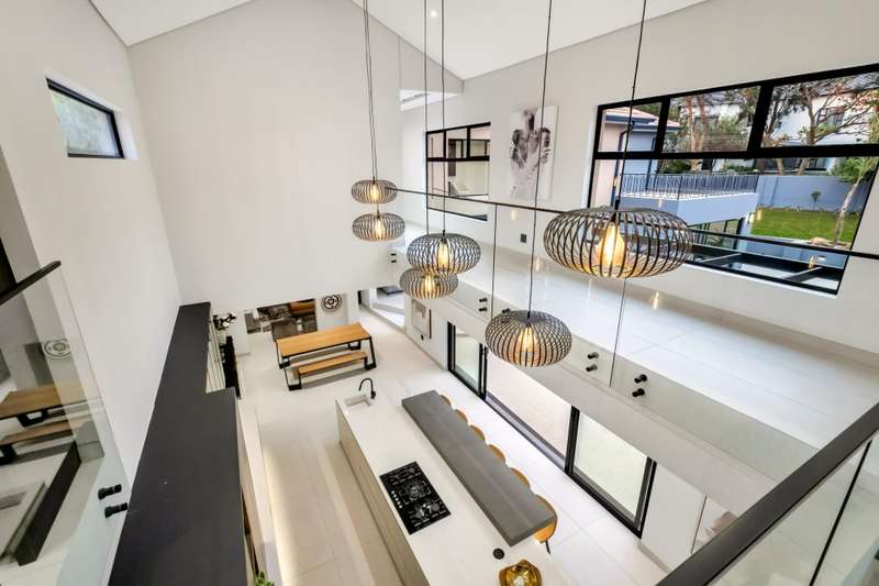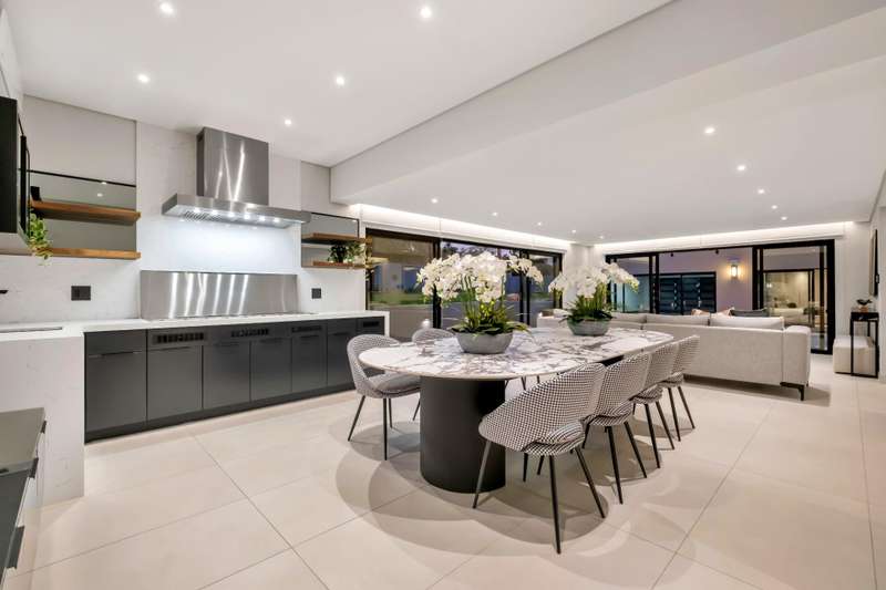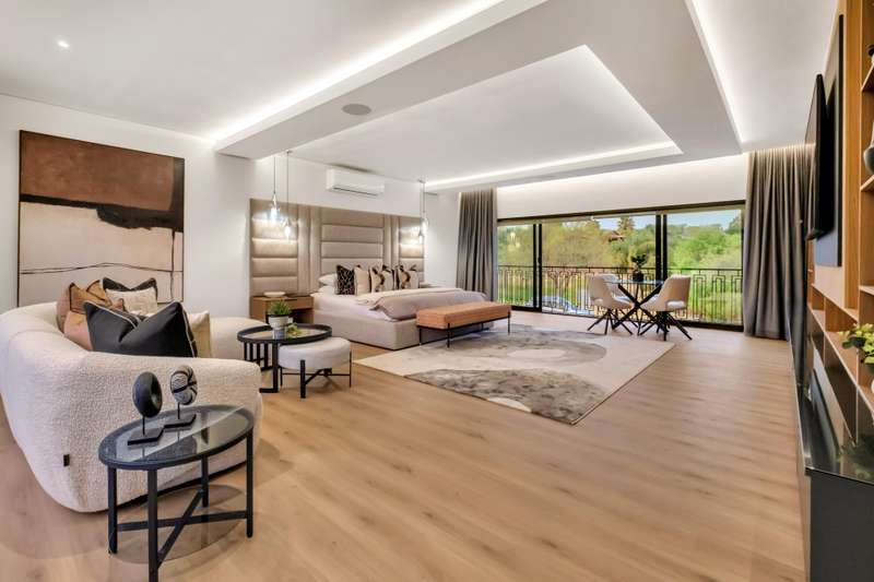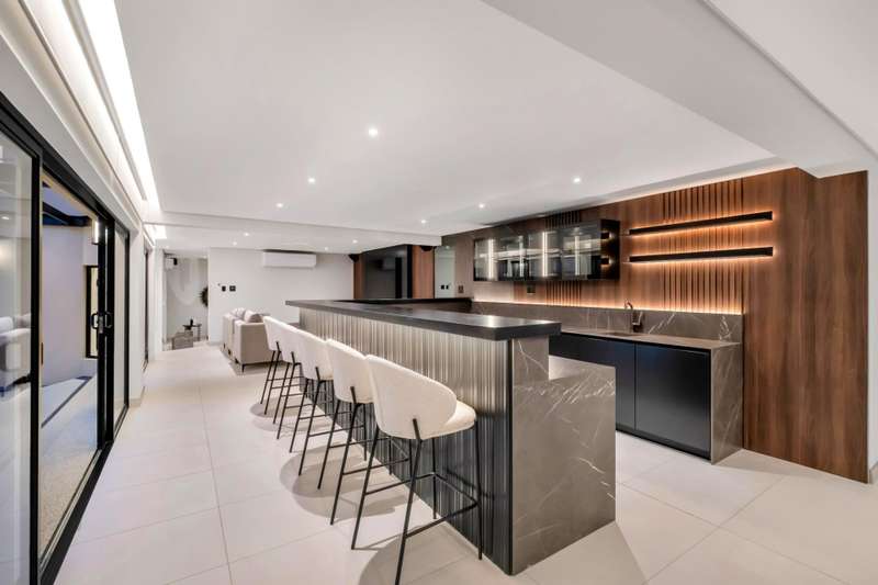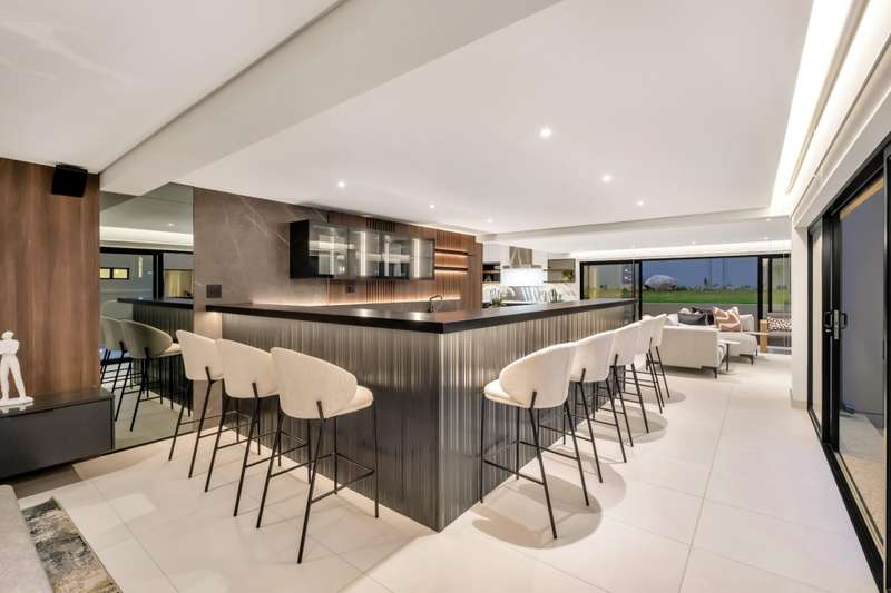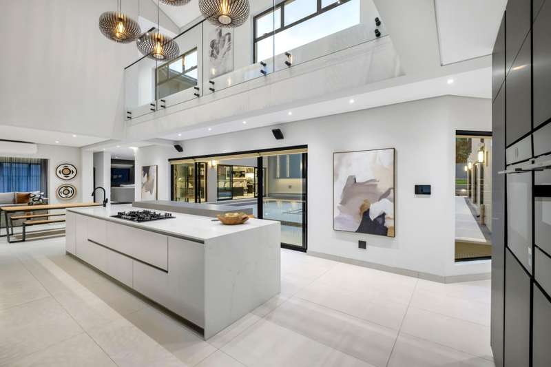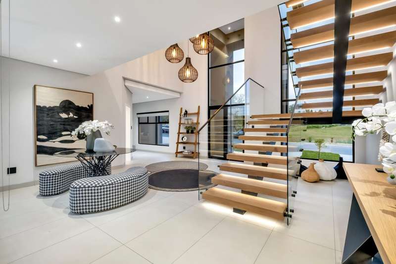 This magnificent residence is a true masterpiece ?Çô a symphony of whites, blacks, and greys that come together in perfect harmony. Recently completed with a brand-new renovation and crafted under the vision of a professional interior designer, the home is a flawless blend of contemporary elegance and timeless sophistication. All kitchen appliances and TV are included, with the option to purchase the bespoke furniture and d??cor for a complete, move-in-ready lifestyle. From the very first impression, this home captivates. Its striking fa?ºade and meticulous attention to detail create unmatched street appeal, while the elevated open-stand position ensures uninterrupted, breath-taking views of the golf course, clubhouse, and rolling surrounds. With abundant off-road parking for up to six vehicles, plus two expansive double garages accommodating a further four cars, practicality meets prestige at every turn. Ground Floor: Open-Plan Luxury The entrance opens into a soaring double-volume space, instantly enveloping you in light and openness. At the heart of the home lies the gourmet double-volume kitchen ?Çô a chef?ÇÖs dream with sleek finishes, an enormous pantry, and a fully fitted scullery. The breakfast nook and intimate formal lounge extend seamlessly from this central hub, offering serene views of the courtyard garden and the expansive pool. The open-plan entertainment wing epitomises effortless indoor-outdoor living, featuring two inviting lounges, a grand dining space, and a magnificent pub. Integrated design ensures flow and connection, while a built-in braai and dual guest cloakrooms complete this impressive area. A separate downstairs wing houses the fourth en-suite bedroom with dressing room, enjoying private garden access ?Çô ideal for guests or extended family. Upstairs: A Retreat of Pure Indulgence A striking floating lightwood staircase, beautifully underlit at night, leads to the upper level. Here, three magnificent bedroom suites are complemented by an expansive enclosed pyjama lounge with sweeping estate views and an airy study area. The main suite is nothing short of spectacular ?Çô oversized, opulent, and crafted to the highest standard. It boasts a designer dressing room and a five-star en-suite bathroom, where luxury and serenity merge. The two additional en-suite bedrooms, each with its own dressing room, provide comfort and privacy for family or guests. Outdoors & Features Set on one of the largest stands within the estate, the property offers landscaped gardens with a full irrigation system. The oversized pool becomes a central feature, framed by the home?ÇÖs entertainment areas. Additional highlights include: ?Çó En-suite staff accommodation ?Çó 16 kW solar and inverter system for sustainable living ?Çó Seamless balance of openness, privacy, and spectacular views This is more than a home ?Çô it is a lifestyle statement, designed for the discerning buyer who values exclusivity, sophistication, and effortless comfort.