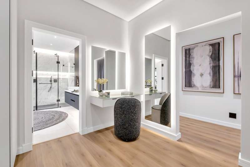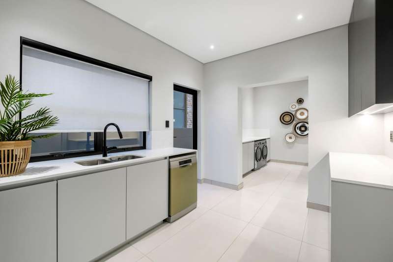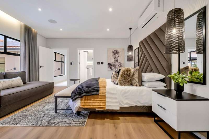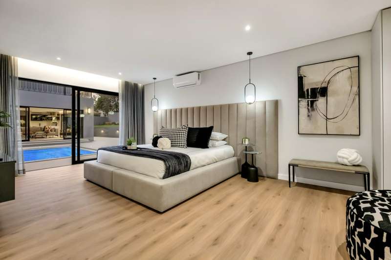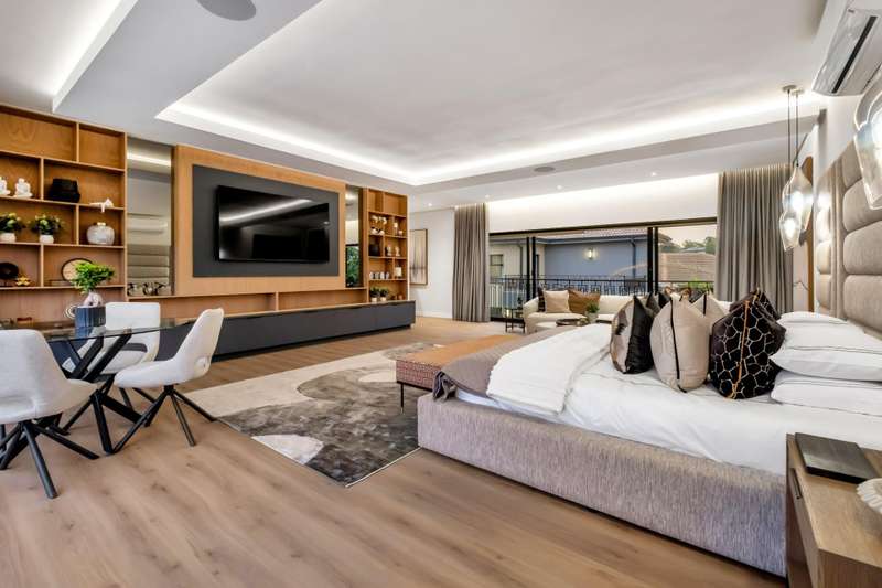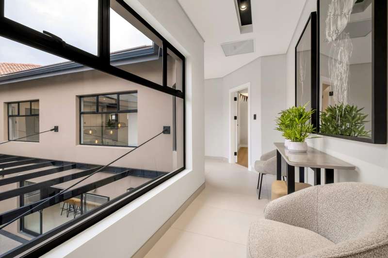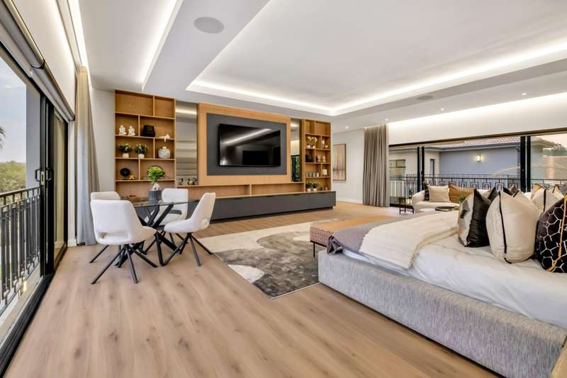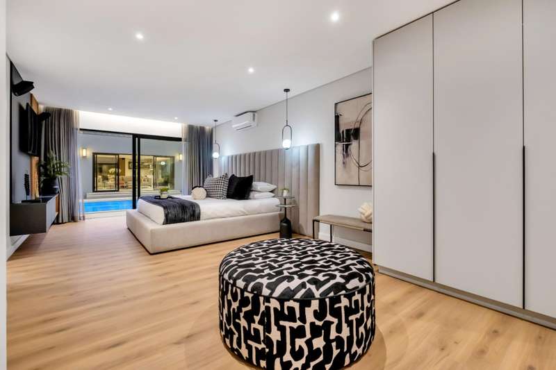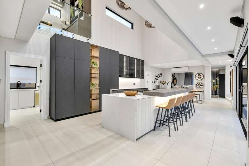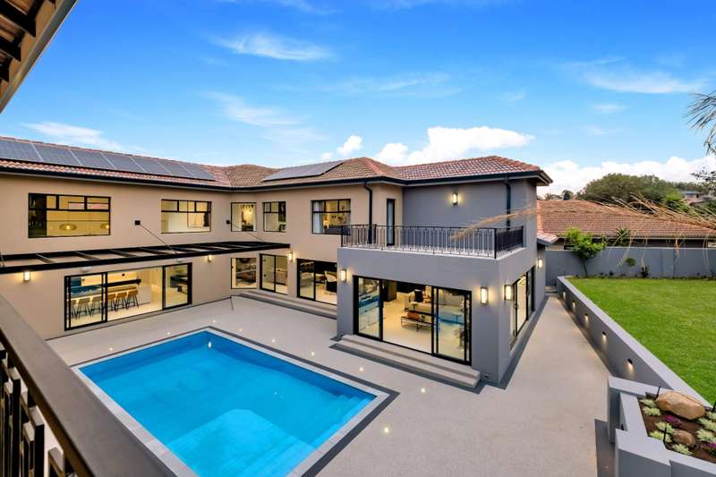 This magnificent residence is a true masterpiece ?Çô a symphony of whites, blacks, and greys that come together in perfect harmony. Recently completed with a brand-new renovation and crafted under the vision of a professional interior designer, the home is a flawless blend of contemporary elegance and timeless sophistication. All kitchen appliances and TV are included, with the option to purchase the bespoke furniture and d??cor for a complete, move-in-ready lifestyle. From the very first impression, this home captivates. Its striking fa?ºade and meticulous attention to detail create unmatched street appeal, while the elevated open-stand position ensures uninterrupted, breath-taking views of the golf course, clubhouse, and rolling surrounds. With abundant off-road parking for up to six vehicles, plus two expansive double garages accommodating a further four cars, practicality meets prestige at every turn. Ground Floor: Open-Plan Luxury The entrance opens into a soaring double-volume space, instantly enveloping you in light and openness. At the heart of the home lies the gourmet double-volume kitchen ?Çô a chef?ÇÖs dream with sleek finishes, an enormous pantry, and a fully fitted scullery. The breakfast nook and intimate formal lounge extend seamlessly from this central hub, offering serene views of the courtyard garden and the expansive pool. The open-plan entertainment wing epitomises effortless indoor-outdoor living, featuring two inviting lounges, a grand dining space, and a magnificent pub. Integrated design ensures flow and connection, while a built-in braai and dual guest cloakrooms complete this impressive area. A separate downstairs wing houses the fourth en-suite bedroom with dressing room, enjoying private garden access ?Çô ideal for guests or extended family. Upstairs: A Retreat of Pure Indulgence A striking floating lightwood staircase, beautifully underlit at night, leads to the upper level. Here, three magnificent bedroom suites are complemented by an expansive enclosed pyjama lounge with sweeping estate views and an airy study area. The main suite is nothing short of spectacular ?Çô oversized, opulent, and crafted to the highest standard. It boasts a designer dressing room and a five-star en-suite bathroom, where luxury and serenity merge. The two additional en-suite bedrooms, each with its own dressing room, provide comfort and privacy for family or guests. Outdoors & Features Set on one of the largest stands within the estate, the property offers landscaped gardens with a full irrigation system. The oversized pool becomes a central feature, framed by the home?ÇÖs entertainment areas. Additional highlights include: ?Çó En-suite staff accommodation ?Çó 16 kW solar and inverter system for sustainable living ?Çó Seamless balance of openness, privacy, and spectacular views This is more than a home ?Çô it is a lifestyle statement, designed for the discerning buyer who values exclusivity, sophistication, and effortless comfort.