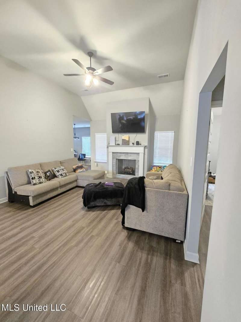 100% FINANCING BY PREFERRED LENDER!!! Highly sought after REDWOOD plan. Upon entrance you will find tall ceilings and natural light covering the foyer. The dining room, sitting area, or office is to your immediate left. The gas stove kitchen has an eat in kitchen bar and breakfast nook, custom cabinets, and beautiful quartz counter tops. The spacious owner's suite is off the living room equipped with jetted tub and separate shower. Split floor plan. The other bedrooms are on the other side. NO carpet downstairs. 4th bedroom or entertainment room is upstairs. Outside is the RAVE boasting a huge patio and fenced in area, ceiling fan for relaxing and enjoying life in Mississippi. Come check it out today.