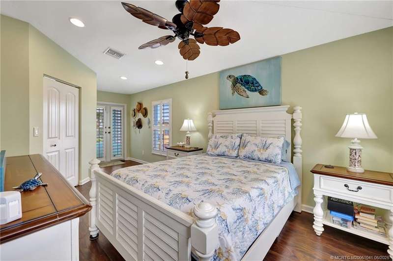 Custom-built home, offers the perfect blend of coastal living & timeless design. Designed with comfort and functionality, it boasts two master suites, one on each floor, ensuring ultimate convenience & privacy. The 1st floor features an open floor plan with custom cabinetry, a breakfast bar, crown molding, 10' ceilings, plantation shutters a master suite. The 2nd-floor master suite includes a spacious walk-in closet & a screened-in balcony with the serene island breeze & the river view. Built with durability and style, the home features a seamless metal roof, hurricane-impact windows, a 2022 A/C & a tankless water heater. Outdoor space is designed for enjoyment. This home is a haven of elegance and functionality in a stunning island setting. Located in a gated, pet-friendly, and golf cart-friendly community, this property offers a vibrant lifestyle with many amenities, catering to all interests & activity levels. Furnishings are included! Truly a must-see!