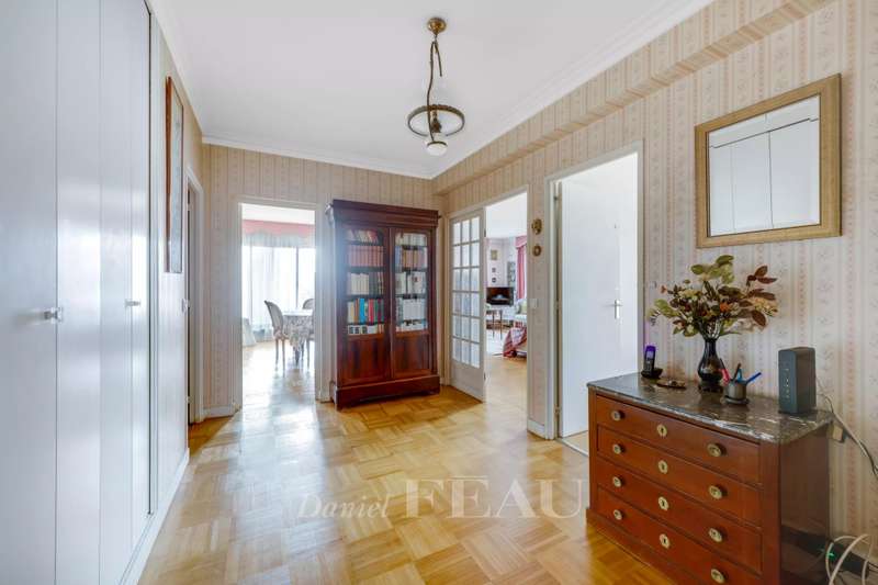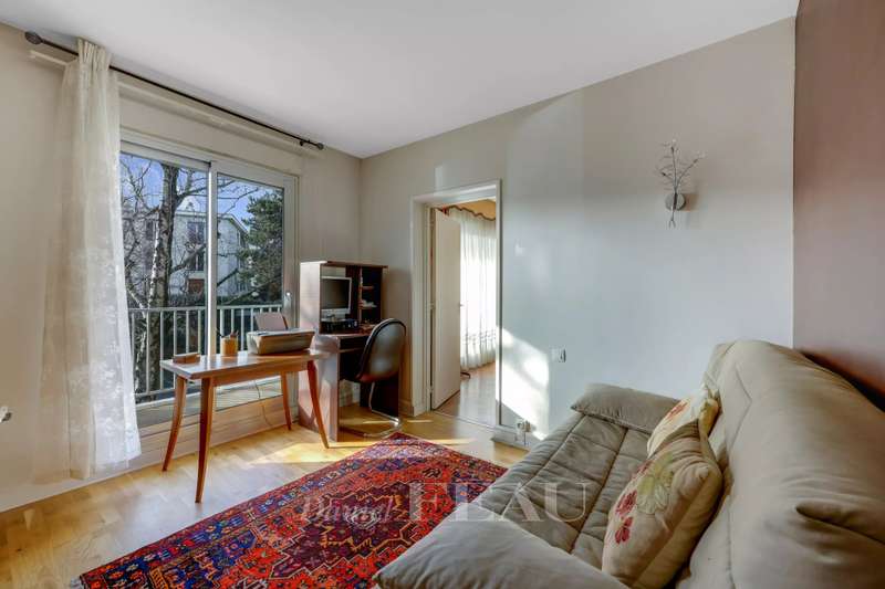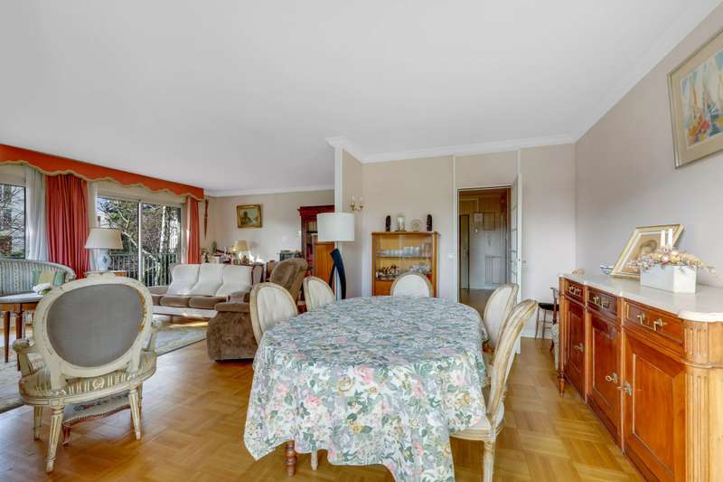 10 minutes from the RER, family apartment with an entrance, a double living room opening onto a large south facing balcony (18 m²). A dining kitchen and a scullery, a master bedroom, two bedrooms, a dressing room, a bathroom and a shower room. A second balcony accessible from the bedrooms, a box and a parking space outside and a cellar. Secure residence with elevator. Quiet and bright apartment, to refresh.