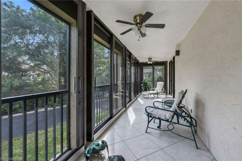 Spacious end-unit, three-bedroom, three bath condo with tile in all the main living areas including the large wraparound hurricane-rated glass-enclosed lanai with peaceful, parklike views. A bonus open air separate balcony is off the other two bedrooms. The kitchen has upgraded granite countertops and the separate laundry room comes equipped with a newer washer and dryer and recently installed water heater. Beautiful Chateaumere sits on 10 acres with three pools, a spa, two guest suites for overflow company, an exercise room, a festive party room, an excellent on-site manager, a fiscally sound board, friendly people and securely locked lobbies. Ideally located close to the trams to drive you down to the Gulf of Mexico with private Pelican Bay restaurants and the white sandy beach with full beach service, just bring your towel. In desirable Pelican Bay, there are also 18 tennis courts, a fitness center and miles of walking/biking paths. Enjoy the Naples lifestyle in a gorgeous setting, perfectly located very close to fabulous shopping, more delicious dining options and Artis - Naples.