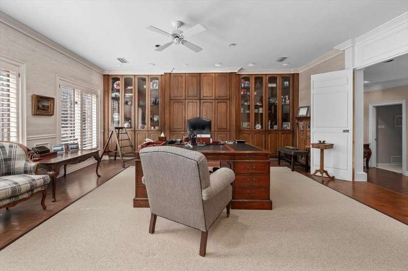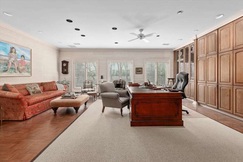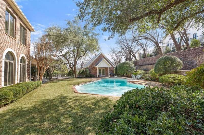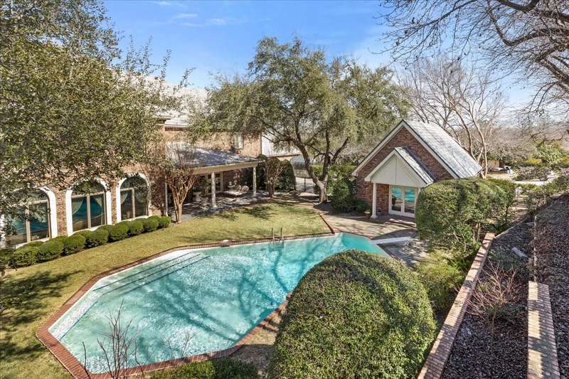Ideally located in Westover Hills, this beautifully appointed traditional home offers 5 bedrooms, 4.5 baths, and approximately 6,700 sq ft of elegant living space. The main-level primary suite features a fireplace, two walk-in closets, and an attached office or exercise room. Gracious formal spaces include a marble-floored entry, library with fireplace, large living room overlooking the pool, and a spacious game room with wet bar. The kitchen features a breakfast area and connects to a large utility room with built-ins. Upstairs are four additional bedrooms and three full baths. Enjoy outdoor living with a covered patio, pool, and pool cabana with bath. Additional features include three fireplaces, a greenhouse, two-car garage, two-car carport, and generous storage throughout.