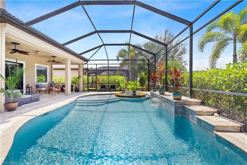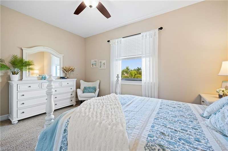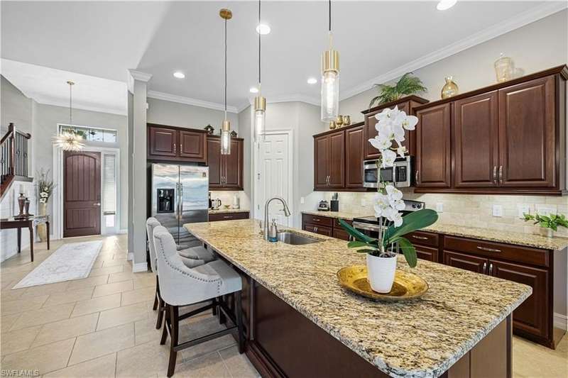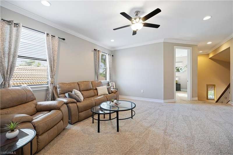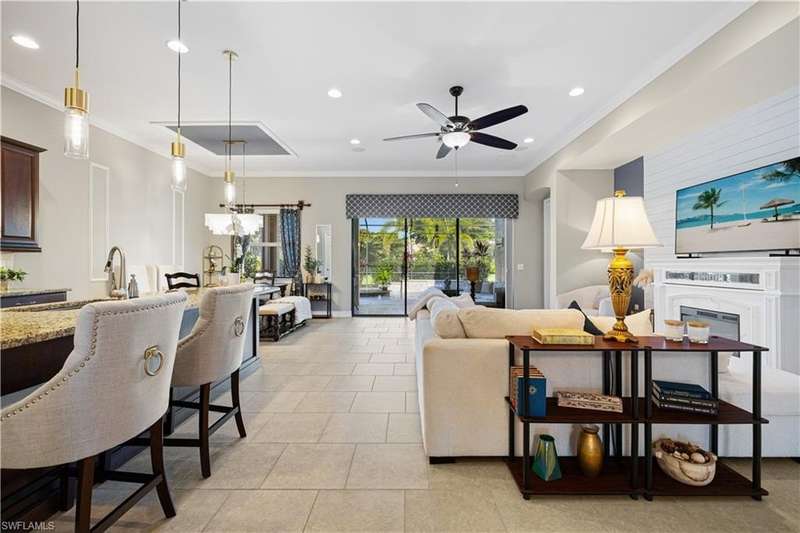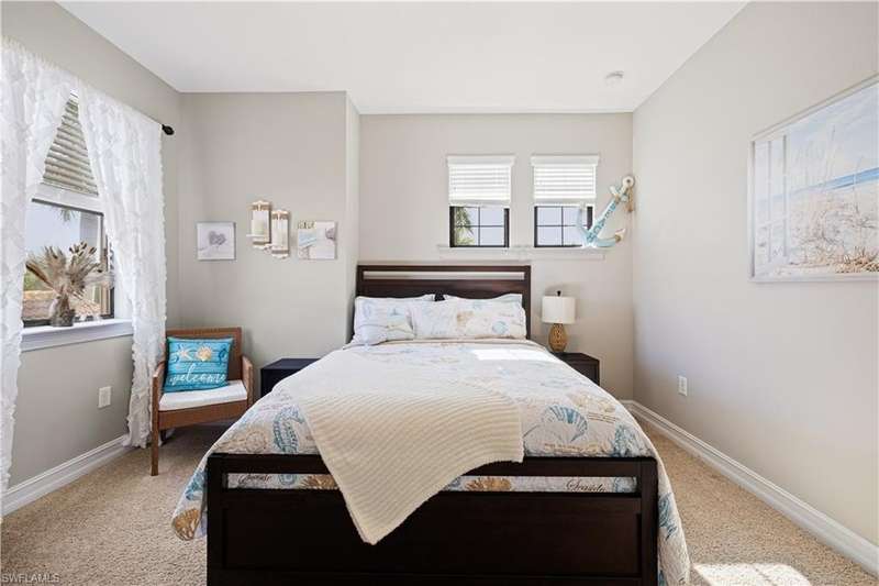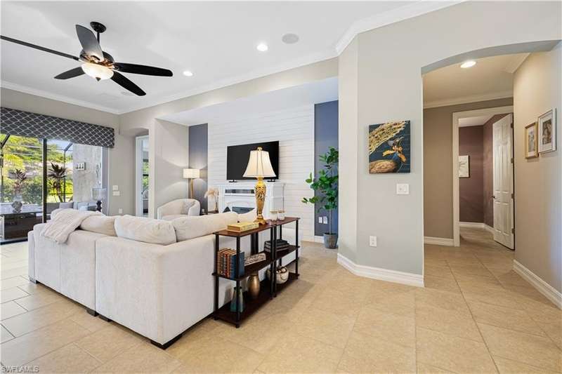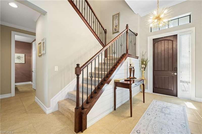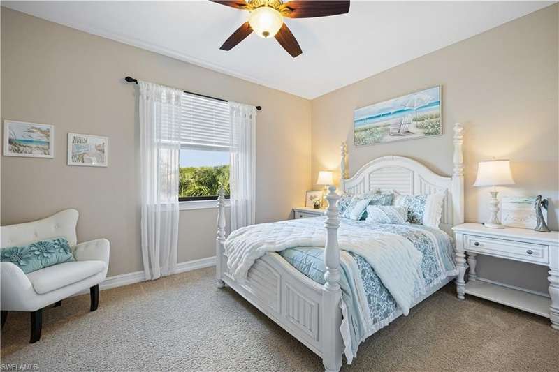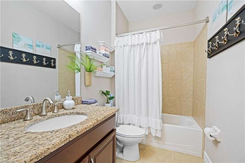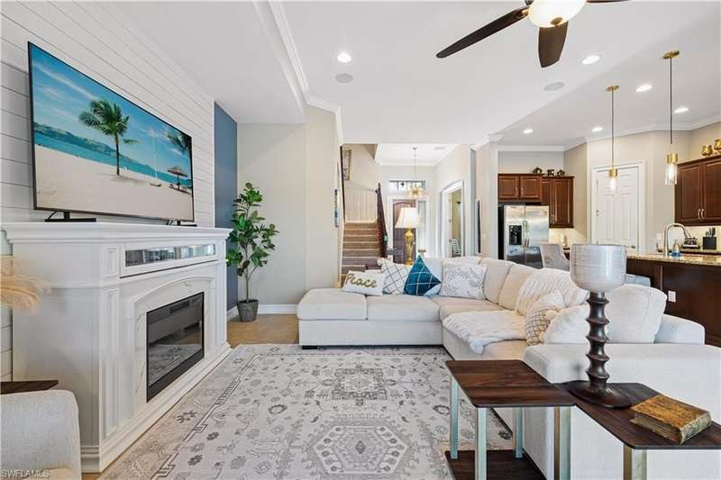 Welcome to your new oasis! This exquisite 2-story house combines modern elegance with comfortable living, perfect for families or anyone craving a serene retreat. As you step inside, you’re greeted by a spacious living area adorned with stylish tile flooring that seamlessly flows throughout the main level. The great room boasts beautiful shiplap accents, creating a cozy yet sophisticated atmosphere ideal for entertaining or relaxing. this culinary haven features sleek stainless steel appliances, a generous kitchen island that doubles as a breakfast bar, and ample counter space for meal prep. Enjoy delightful dinners in the adjoining dining area, which comfortably seats six, making it perfect for family gatherings or intimate dinners with friends. Venture outside to discover your own private paradise. The sparkling pool and spa provide a perfect setting for summer barbecues or tranquil evenings under the stars. The primary suite features a king bed, a TV, and a walk-in closet. The en-suite bathroom is a spa-like escape, featuring a walk-in shower and a soaking tub. There is a den on the first floor for anyone that has to work while vacationing or just need a quiet place to read. On the second floor, you’ll find two inviting guest bedrooms, each featuring queen beds, ensuring your visitors enjoy a restful stay. The loft area, complete with a TV, serves as an additional living space to unwind or catch up on your favorite shows. A convenient guest bathroom completes this level, offering privacy and comfort for your guests. Paloma offers access to amenities, including a resort-style pool, fitness center, tennis and bocce courts, and a beautifully clubhouse. Paloma is also known for its vibrant social scene: water aerobics, poker nights, yoga, book clubs, happy hours, ladies luncheons, and more—perfect for seasonal living. Just 10 mins to Coconut Point or The Promenade at Bonita Bay, under 15 mins to beaches, and 25 mins to RSW Airport, 5 Minutes to historic Downtown Bonita with cafes & coffee shops, dining, parks and festivals, a kayak launch and more.