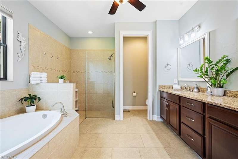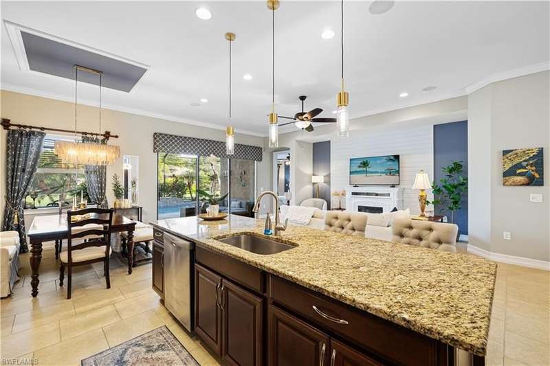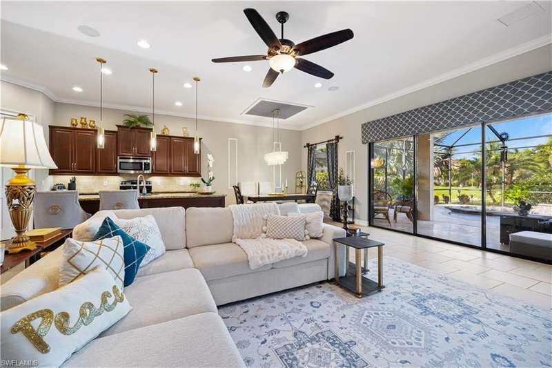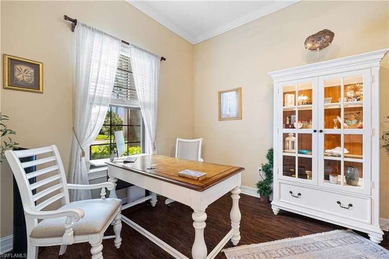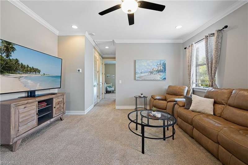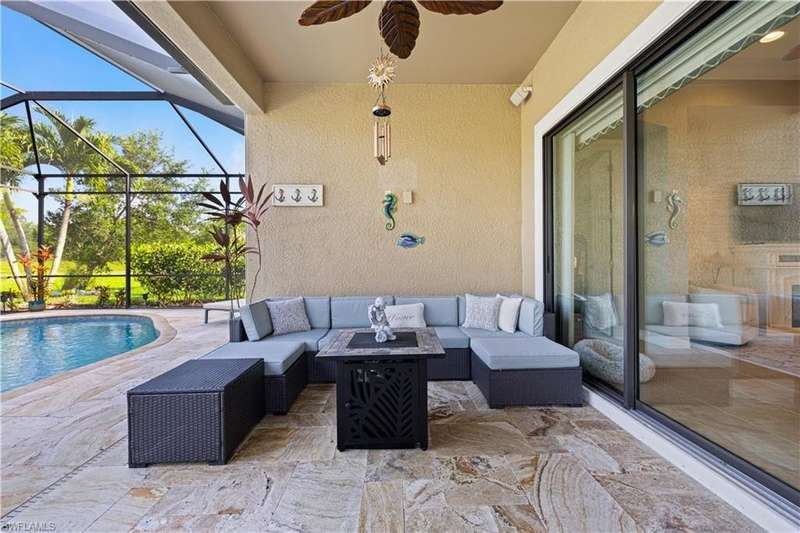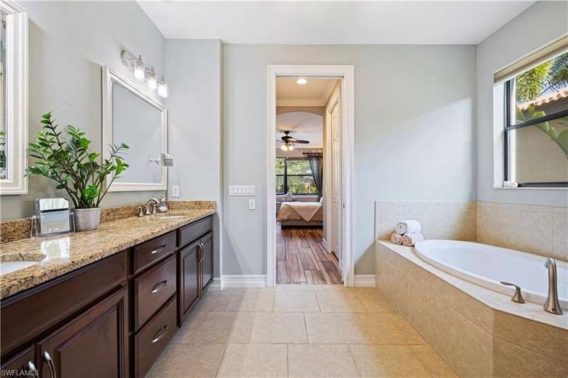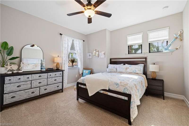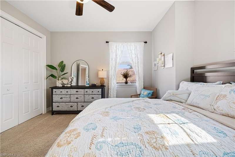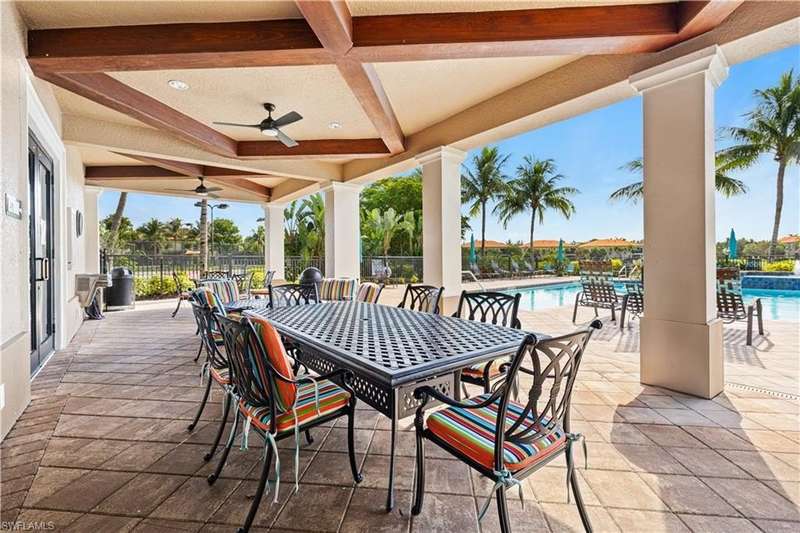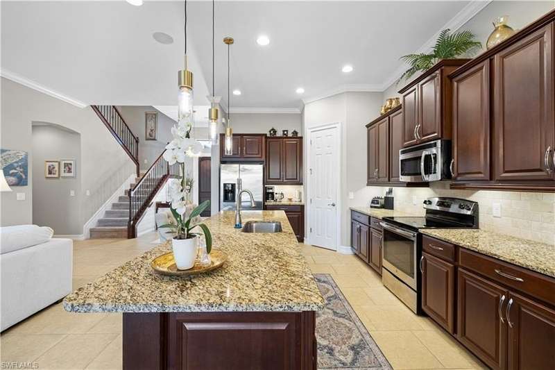 Welcome to your new oasis! This exquisite 2-story house combines modern elegance with comfortable living, perfect for families or anyone craving a serene retreat. As you step inside, you’re greeted by a spacious living area adorned with stylish tile flooring that seamlessly flows throughout the main level. The great room boasts beautiful shiplap accents, creating a cozy yet sophisticated atmosphere ideal for entertaining or relaxing. this culinary haven features sleek stainless steel appliances, a generous kitchen island that doubles as a breakfast bar, and ample counter space for meal prep. Enjoy delightful dinners in the adjoining dining area, which comfortably seats six, making it perfect for family gatherings or intimate dinners with friends. Venture outside to discover your own private paradise. The sparkling pool and spa provide a perfect setting for summer barbecues or tranquil evenings under the stars. The primary suite features a king bed, a TV, and a walk-in closet. The en-suite bathroom is a spa-like escape, featuring a walk-in shower and a soaking tub. There is a den on the first floor for anyone that has to work while vacationing or just need a quiet place to read. On the second floor, you’ll find two inviting guest bedrooms, each featuring queen beds, ensuring your visitors enjoy a restful stay. The loft area, complete with a TV, serves as an additional living space to unwind or catch up on your favorite shows. A convenient guest bathroom completes this level, offering privacy and comfort for your guests. Paloma offers access to amenities, including a resort-style pool, fitness center, tennis and bocce courts, and a beautifully clubhouse. Paloma is also known for its vibrant social scene: water aerobics, poker nights, yoga, book clubs, happy hours, ladies luncheons, and more—perfect for seasonal living. Just 10 mins to Coconut Point or The Promenade at Bonita Bay, under 15 mins to beaches, and 25 mins to RSW Airport, 5 Minutes to historic Downtown Bonita with cafes & coffee shops, dining, parks and festivals, a kayak launch and more.