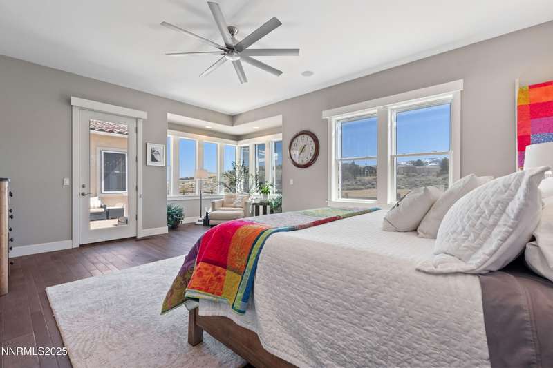 This is one of the most popular floor plans in Somersett located on the 7th fairway of the championship course. It features soaring 12 ft ceilings in a spacious great room concept that creates an inviting and open atmosphere. The seller has spared no expense in upgrading this home to custom home status. It has wonderful views of the fairway, the green and the mountains. The chefs kitchen features all Miele appliances with a steam assisted oven, beautiful cabinetry, built-in buffet and butlers pantry., Don't forget the 3\4 inch hardwood floors throughout this home. Outside there is a weather protected courtyard overlooking your synthetic putting green. The master bathroom features a glass barn door for privacy, heated floors, heated ceiling fan, beautiful custom organizers in the closet and electric shades. In the great room there's a striking floor to ceiling modern style fireplace, adding both warmth and elegance to the living space. All 3 bedrooms have upgraded toilets with all the bells and whistles. Located on a quiet cul de sac with very mature landscaping for privacy. Garage is also finished with an industrial epoxy floor. One of the HVAC units and air conditioners have just been replaced as well.