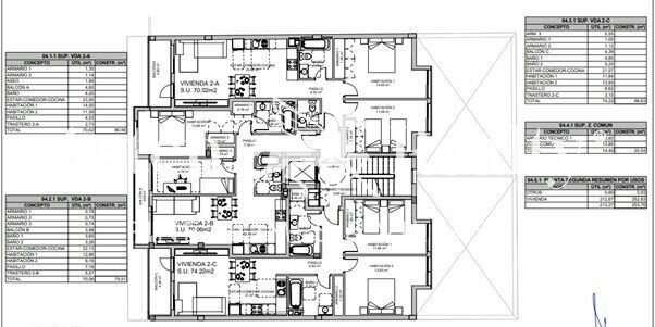 Vivienda 2B - 2 bedroom flat located on the 2nd floor of new building. The living area is 70 m2 with a balcony of 4 m2. Both bedrooms have built-in wardrobes and windows facing the front of the building. There is an open plan kitchen, dining room and living room with access to the balcony. A complete bathroom concludes the composition of this flat.