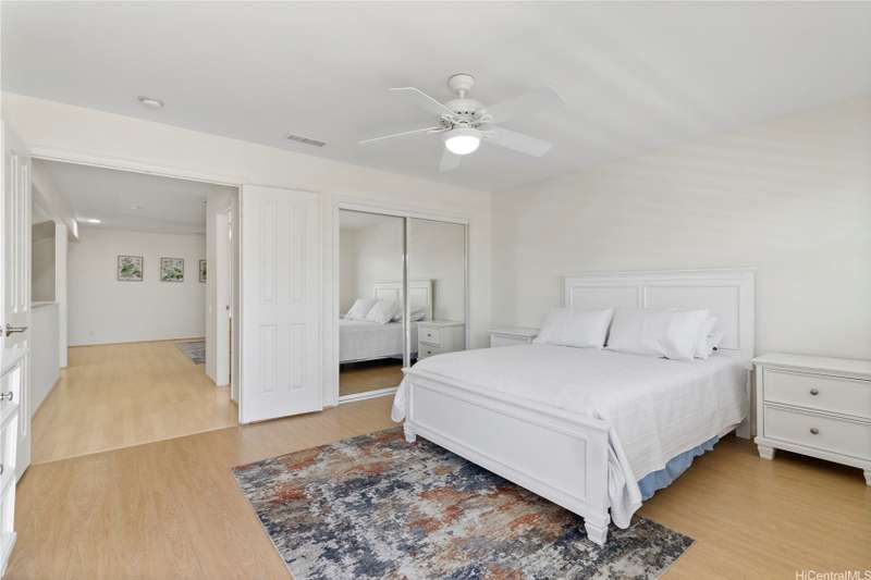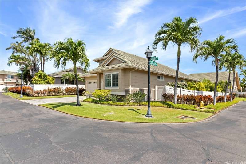 Welcome home to Huelani, a gated planned community of CPR Single Family Homes with Resort-like amenities. This 3 bedroom, 3 full bath home features 2 bedrooms on the first floor, one of them a large primary suite. The second floor contains a family room, full bath, and another spacious bedroom with a large lanai overlooking the lush private yard. Enjoy entertaining your guests in the comfortable open floor plan cooled by the central AC. Some of the features include Plantation Shutters, enclosed 2-car garage, landscaped front and back yards. The maintenance fees cover the costly upkeep of roof maintenance, exterior painting, front yard landscape maintenance, hurricane insurance, termite protection, water and sewer, and all of the amazing community amenities.