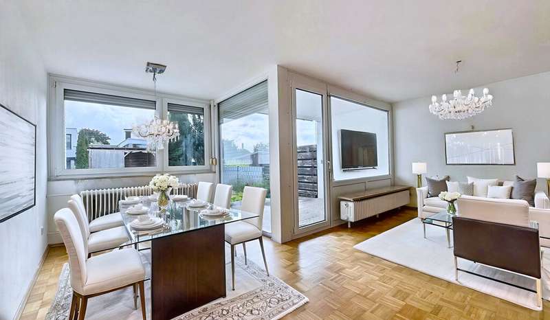 This mid-terrace house combines a pleasant feeling of space with a well thought-out layout and a location that promises both tranquillity and proximity to the city. Anyone looking for a home that offers space to live, create and grow will find the perfect foundation here. On the first floor, you are greeted by a spacious, open-plan living and dining area that lets in plenty of natural light thanks to large windows and creates a bright, friendly atmosphere. From here, you have direct access to the terrace and garden. The outdoor area offers plenty of potential for individual design - whether as a green oasis, play area or quiet outdoor retreat. With a little care, you can create a beautiful green space here. The upper floor offers three well-designed rooms that can be used flexibly as bedrooms, children's rooms, study rooms or guest rooms. Two of the rooms have direct access to a balcony - here too, large windows provide plenty of light and create a pleasant living atmosphere. Especially in the evening hours, this creates an atmospheric setting with a view of the outdoors. The space on this floor is harmoniously complemented by a bathroom. The basement offers several rooms with versatile uses - ideal for housekeeping, hobbies, storage space or provisions. Here too, the house impresses with practical solutions and additional space for everyday items.