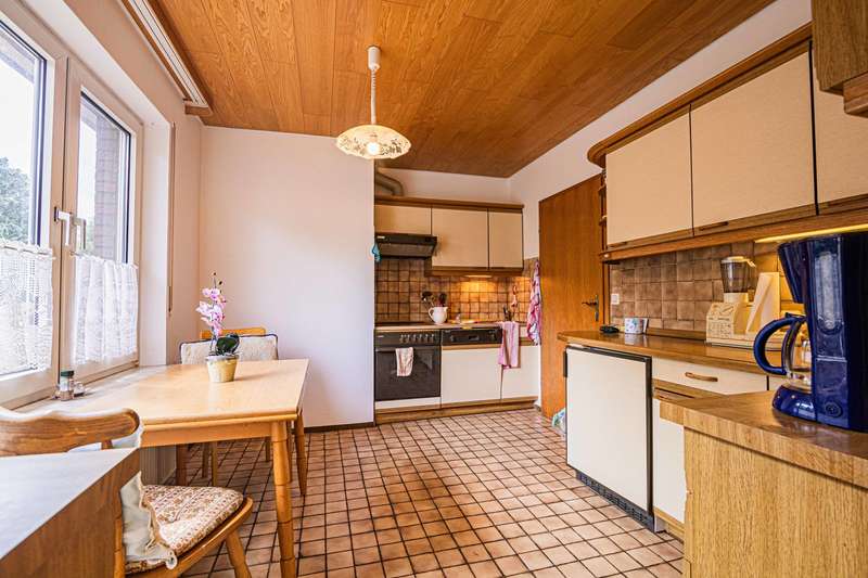 Whether couples, small families, large families or multi-generations - this house is simply perfect for everyone! In an idyllic rural setting and yet only a few minutes' drive from Cuxhaven city center and the North Sea, this detached house from 1983 is situated on a plot of approx. 1,534 m². Originally built with approx. 131 m² of living space, the attic was converted in 1993 and the roof extended by two dormers, so that 8.5 rooms and approx. 217 m² of living space are now waiting to be furnished and designed entirely according to your wishes and ideas. The property is characterized by its well thought-out room layout and generous room design. Thanks to the many large windows, all rooms are bright, friendly and very inviting. The first floor is divided into five rooms, a bathroom, guest WC, kitchen with adjoining pantry and utility room as well as a boiler room and tank room. Together with the dining room, the living room is the largest room in the house. From here you can access the west-facing, covered terrace. The daylight bathroom is equipped with a shower and bathtub, so that everyone really gets their money's worth here. The three other rooms are ideal as guest rooms, children's rooms and bedrooms. The attic, which was subsequently converted, also has enough space to feel at home with four rooms. With the built-in shower room and kitchen, it could also be used as a two-family or multi-generational home. The two attic/loft rooms that have not yet been converted offer further potential for expansion and design. The single garage also provides a dry place for your vehicle. Have we piqued your interest? Then give us a call, arrange a viewing appointment with us and fulfill your dream of owning your own four walls!