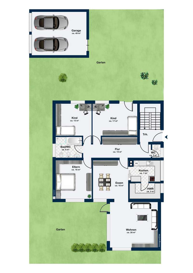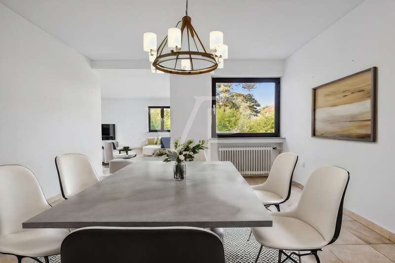 This spacious two/three-family house from 1969 is situated on a corner plot of around 975 m² in one of the most sought-after corner plot in one of the most sought-after residential areas of Saarlouis. With a total living area of around 290 m² on three levels, this house offers plenty of space and flexibility. The solid building structure with reinforced concrete ceilings and modern district heating ensure a pleasant indoor climate. All three apartments are self-contained residential units; only the supply lines on the top floor would need to be separated to ensure complete independence. The first floor offers approx. 120 m² of living space with a light-flooded living and dining area, a kitchen with adjoining dining room, a master bedroom, two children's bedrooms and a guest WC. The daylight bathroom is equipped with a shower and a bathtub. The living room has access to the garden, as does one of the bedrooms. The upper floor also offers a large living and dining area of approx. 90 m², a separate kitchen, a master bedroom, a children's room, a guest WC and a spacious balcony, which was newly sealed in 2023. The top floor extends to approx. 75 m² and, like the ground and upper floors, has a spacious kitchen, a daylight bathroom with shower, two bedrooms and a bright living room. The spacious garden invites you to linger and relax, while the garages with electric doors offer space for two cars. In addition to a guest WC, the basement also includes two cellar rooms, a possible hobby room, a laundry room and a heating and oil tank room, offering additional usable space and functionality. This three-family house combines living comfort, functionality and a first-class location. It offers families and investors an excellent opportunity to invest in a property with great potential. See the benefits of this unique home for yourself and arrange a viewing today!