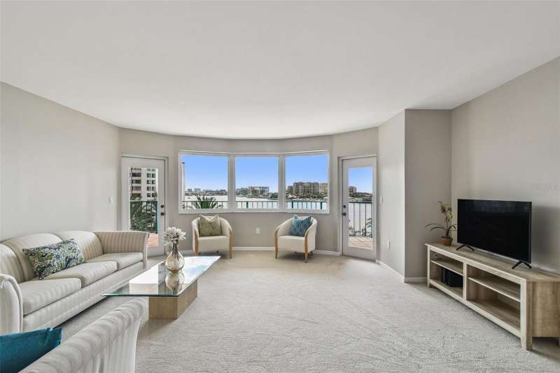 Under contract-accepting backup offers. Welcome to Sunwatch Condominiums on Island Estates, an exclusive RESORT-STYLE community spanning 3.8 acres with over 300 feet of WATERFRONT, located in the vibrant, self-contained waterfront enclave of Island Estates. MILESTONE and SIRS studies are COMPLETED and fully funded. This is the residence you’ve been waiting for! A spacious 2,142 sq ft split-floor plan with STUNNING INTER-COASTAL AND GULF VIEWS features an OWNER'S WING and a VIP/GUEST WING with two guest bedrooms and an updated guest bath. Freshly painted interiors, new carpet, and upgraded lighting create a move-in ready home. Enjoy an expansive 39-ft BALCONY with stunning views of both sunrises to the east and SEASONAL SUNSETS to the west. Inside you’ll find a light-filled living room and dining area, spacious kitchen with dinette, private office with built-ins, laundry room, guest powder room, and an owner’s suite with balcony access. Sunwatch offers meticulously maintained amenities including TWO swimming pools with TWO poolside pavilions, bathrooms, and TWO grills, TWO tennis/pickleball courts, fitness room, community/billiards room, party room, full time on site property manager, MARINA SLIPS (subject to availability), TWO EXCLUSIVE GUEST SUITES for owners, and lush green spaces for relaxation. This pet-friendly community welcomes two cats and two dogs of any size—bring your full-figured friend! Rentals are permitted with a one-year minimum lease, subject to board approval and background screening. Additional features include under-building parking space #39. From your balcony, enjoy views of the pools, passing yachts, playful dolphins, and breathtaking sunsets. Just outside your door, Island Estates offers every convenience: dining, sports bar, fine dining, grocery store, UPS, nail salon, Clearwater Marine Aquarium, and more. WHEN THE BEACH CALLS... the White Sugar Sands of Clearwater Beach are only 2 miles away—walk, bike, or hop on the Jolly Trolley. Whether you’re seeking a vacation getaway, a seamless 1031 exchange, or a full-time residence, this is the lifestyle you’ve been waiting for. Come Live on the Island, Come Live the Sunwatch Life!