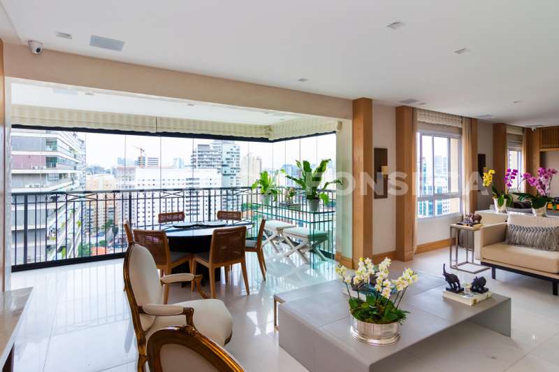 Apartamento no bairro Vila Nova Conceição com 192m² área privativa/útil, 2 dormitório(s), 2 suíte(s), 4 vaga(s), 5 banheiro(s), churrasqueira, escritório, terraço, depósito, mobiliado (a), ar condicionado, dep. de empregados, reformado (a), varanda gourmet.