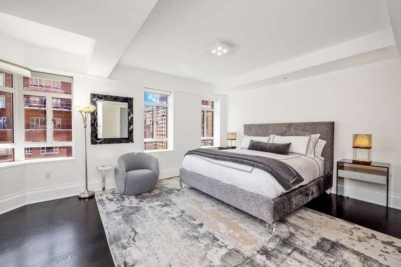 The world class Carlton House, 21 East 61st Street is a jewel on Madison Avenue located steps away from Central Park, around some of the best restaurants in the world and the finest shopping the city has to offer. Triple mint 12D is the highest floor 2 beds 2bath with a terrace in the building. The furnished home is set up as one of the most luxurious finest hotels in the world. The entry foyer and gallery are a shade of grey and white natural stone. The beautiful living room has a brand-new couch from Roche Boobois, brand new coffee table from RH and dining table / chairs from Knoll. The open kitchen has white / black marble mosaics, custom vanities, all with a selection of richly toned exotic wood and fine light grey lacquer cabinetry. Top of the line appliances (hardly used) include Miele appliances, wine cooler, stove, refrigerator, pot filler, dishwasher, microwave, washer/dryer and a disposal. The large corner master bedroom suite has a custom adjustable Tempur-Pedic bed with nightstands from Casa Armani, light fixtures from Casa Armani and completely outfitted are the exquisite closet interiors including mirrors, lighting, drawers and glass cabinetry. The en-suite master bath has radiant heated floors, designed in a calming color palate with light gray glass walls, a large walk-in shower, soaking tub, and separate water closet. The second bedroom has a brand-new desk with a sofa from design within reach. The second bathroom with finely blended design features to match the luxury of the entire home. Other fine features include a laundry closet with large side by side washer and dryer from Miele, finished entry closet, and several individual air-conditioning zones.