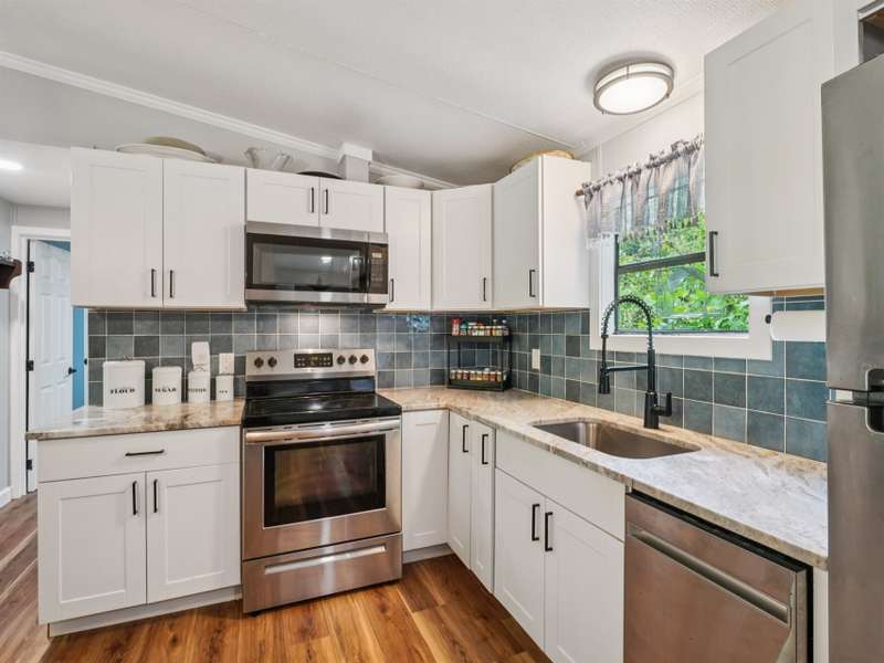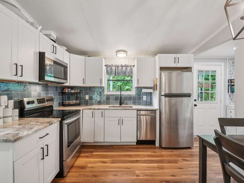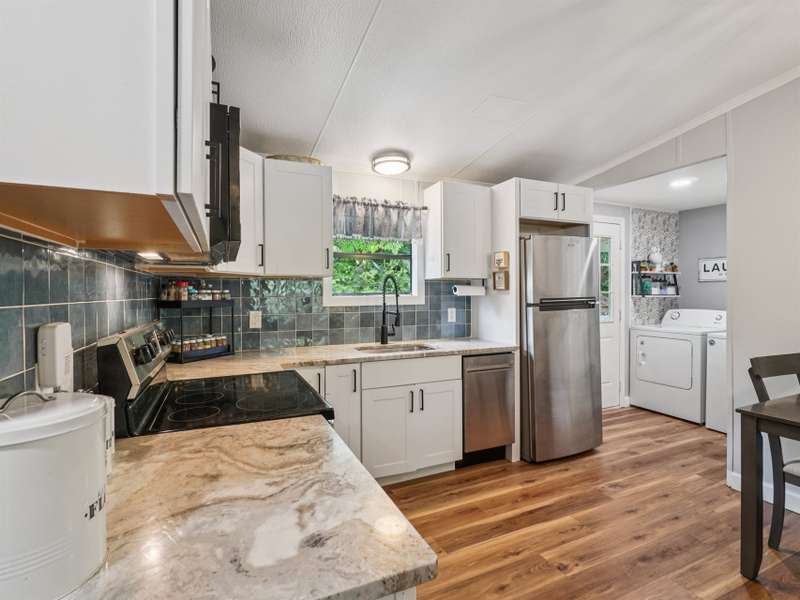 Welcome to this beautifully updated home in the highly sought-after 28804 area of North Asheville, at the end of a private drive. Step inside to discover stylish luxury vinyl plank flooring and tile throughout, creating a clean and contemporary aesthetic. The remodeled kitchen is a standout feature, offering granite countertops, a classic tile backsplash, and sleek stainless steel appliances?perfect for everyday living and entertaining. The primary bedroom includes a walk-in closet and a private en-suite bathroom, providing comfort and convenience. Enjoy your morning coffee or unwind in the evenings on the covered front porch. Additional upgrades include a new metal roof and HVAC system, both installed in 2022, ensuring peace of mind for years to come. Located in the Town of Woodfin, the property also comes with a short-term rental permit?an excellent opportunity for investment or flexible personal use. This home combines thoughtful updates, modern comfort, and a prime location.