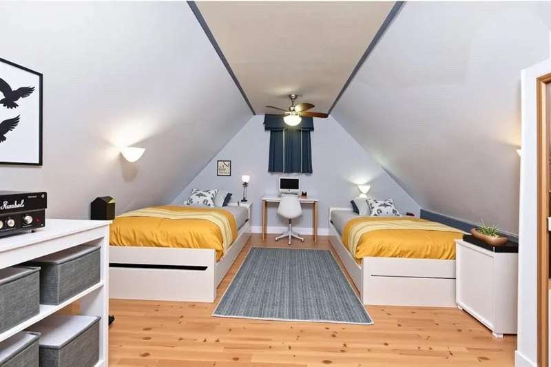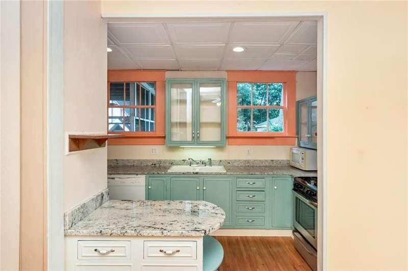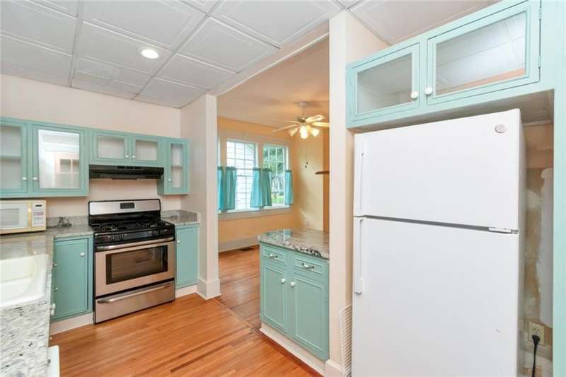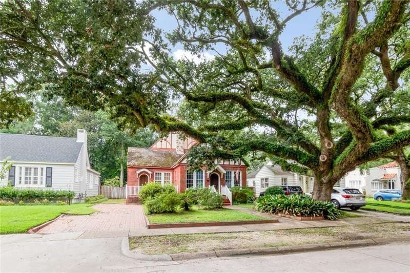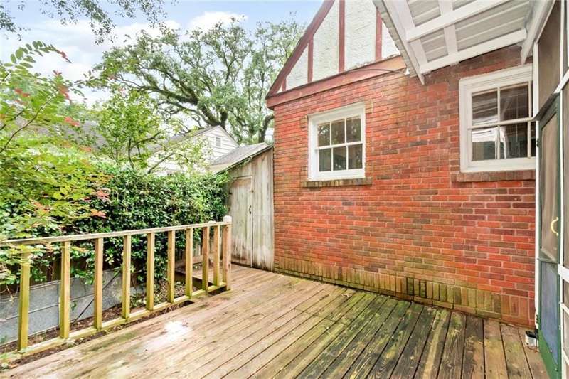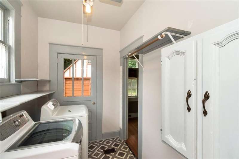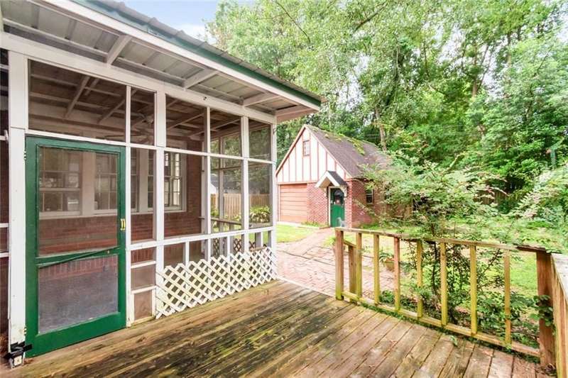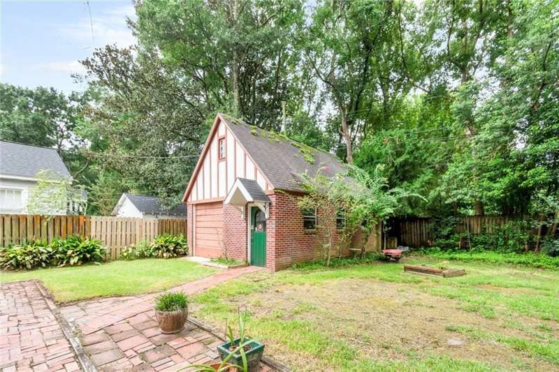 Nestled in the highly sought after Florence Place neighborhood, this 1946 Tudor style offers 4 bedrooms and 2 bathrooms. Originally built as a duplex, the home was thoughtfully converted to a single family home in the early 80's and later expanded with a spacious attic conversion to add more livable square footage. There are two living areas downstairs. One could easily be considered the primary since there is also an en suite bathroom. There is an additional office/bedroom, laundry room and separate dining room. The kitchen features granite countertops and the refrigerator remains. The upstairs features three bedrooms/office/craft rooms and an additional full bathroom with a separate tub and standing shower. The attic conversion captures the essence of classic Tudor design, showcasing sloped rooflines that create a cozy atmosphere. Once exiting through the screened in porch you will see the detached brick garage/workshop (with added water and electricity) designed to match the home's Tudor style. Recent updates per seller include 2 new A/C units (2020, 2023) and a newer water heater (2021)Buyer responsible for verifying all measurements and relevant details