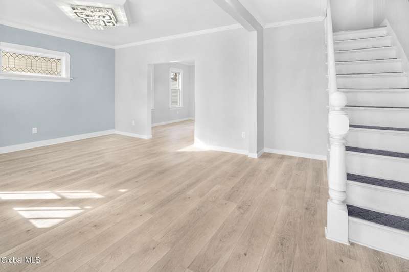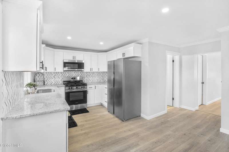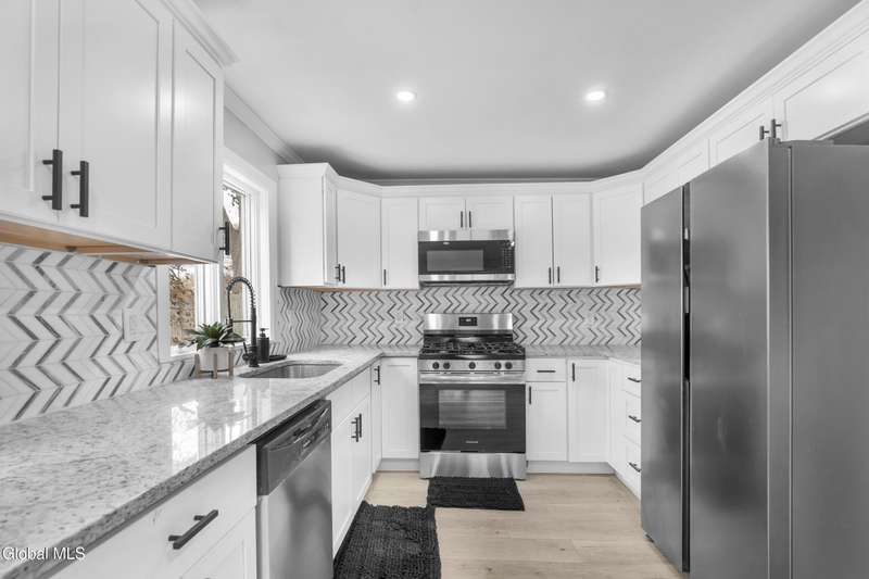 Beautifully remodeled 4-bedroom home for sale in Schenectady! This updated 1,600 sq ft property at 215 Furman Street features a large front porch, spacious living room, formal dining room with crown molding, and a brand-new kitchen with stainless steel appliances, granite countertops, and ceramic tile backsplash. Enjoy a first-floor bedroom and newly renovated full bathroom. The second floor offers 3 more bedrooms and a half bath. Outdoor features include a big backyard and large deck. Additional updates: 200-amp electric service, newer vinyl replacement windows, slate roof, and brand-new driveway that fits 3-4 cars. Full basement and walk-up attic provide excellent storage. Move-in ready Schenectady home close to schools, parks, shopping, and more!