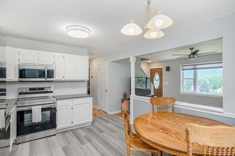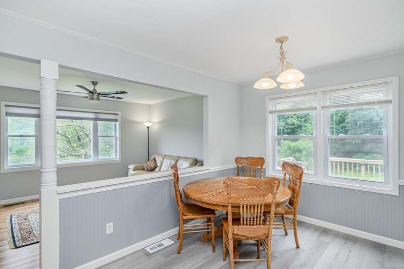 Welcome to 14 Heacock Crossbrook Rd in New Milford, CT - a beautifully remodeled home offering comfort, efficiency, and rural charm. Set on a serene 1-acre lot, this freshly painted residence features new vinyl flooring throughout, enhancing its modern appeal. Inside, you'll find 4 spacious bedrooms and 2 full bathrooms with elegant porcelain tile floors-one bath includes radiant floor heating for added comfort. The main floor primary bedroom includes brand new laminate flooring. The updated kitchen is equipped with granite countertops, stainless steel appliances, an electric stove, microwave, and a stylish tile backsplash. Additional features include six-panel doors, thermal pane windows, central air conditioning, and two-zone heating with programmable thermostats for year-round comfort and energy efficiency. A 1-car garage under the house and a full basement offer generous storage space. Enjoy peaceful country views from the deck just off the kitchen-ideal for entertaining or relaxin
