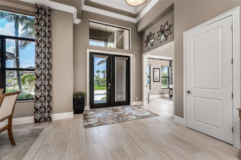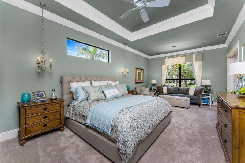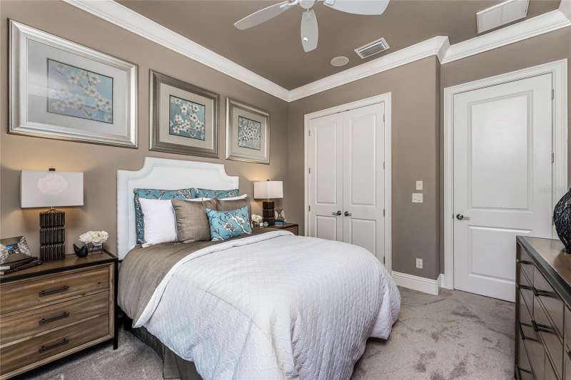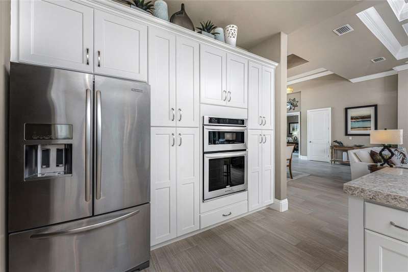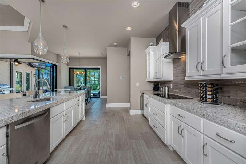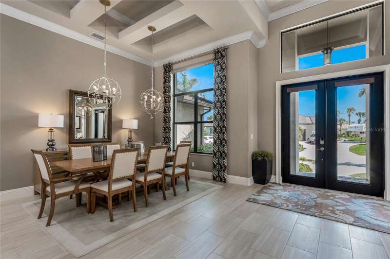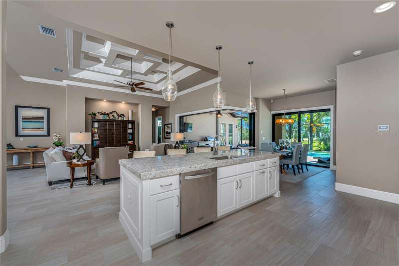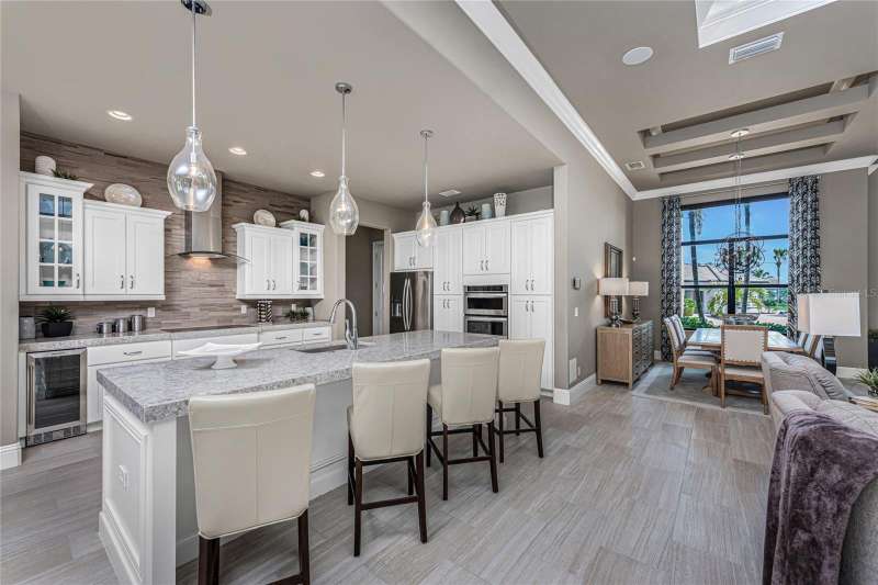 BACK ON THE MARKET DUE TO BUYER DEFAULT - NOW AN OPPORTUNITY FOR YOU! Welcome to your dream home! This former builder's model, crafted by award-winning PGI Homes in 2014, blends comfort, style, & luxury. Offered turnkey furnished including items in the garage, this 3-bedroom, 2-bath home with an office spans 2,680 sq. ft. features an oversized lanai and pool area. A circular paver driveway with lush landscaping leads to an elegant double-door entry. Inside, soaring ceilings with crown molding, an open-concept design and abundant natural light highlight the beautifully furnished space. The great room features a coffered ceiling, while the dining room showcases a unique architectural ceiling. The gourmet kitchen boasts a large 3" edge Silestone quartz countertop with the center island seating for four, a striking tile backsplash, KitchenAid stainless steel appliances, an induction cooktop with a sleek hood, and ample storage in classic white cabinetry. The luxurious primary suite includes a sitting area, French doors to the pool, a tray ceiling, and elegant lighting. Two walk-in closets lead to a spa-like bath with a crystal chandelier, soaking tub, Roman shower with dual heads, and dual vanities with Silestone quartz counters. The guest wing offers two spacious bedrooms and a pool-access bath with custom tile and a glass-walled shower. A standout 3-car garage features wood flooring, crown molding, recessed lighting, and newly installed independent climate control ideal for vehicles or a home gym. BRAND NEW York 5 ton, 16.2 seer AC installed August 2025. Smart home features include a Z-Wave system, security cameras, & a Nuvo sound system with built-in speakers. Additional peace of mind comes with all impact windows and doors, plus electric Kevlar protection across the back lanai and a 2023 stone-coated metal roof. Disappearing sliders open to a wood-ceilinged lanai, summer kitchen, and wall-mounted TV. The expansive travertine pool deck boasts a heated pool with fountains, a sun platform, a submerged granite bar, and multiple lounging area all overlooking a gorgeous lake view. Close to Ponce de Leon Park and minutes to Fishermen's Village - THIS IS YOUR DREAM HOME!
