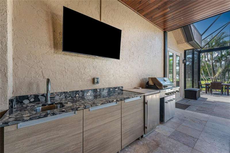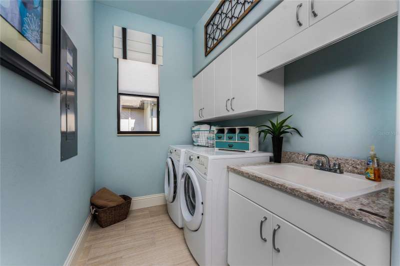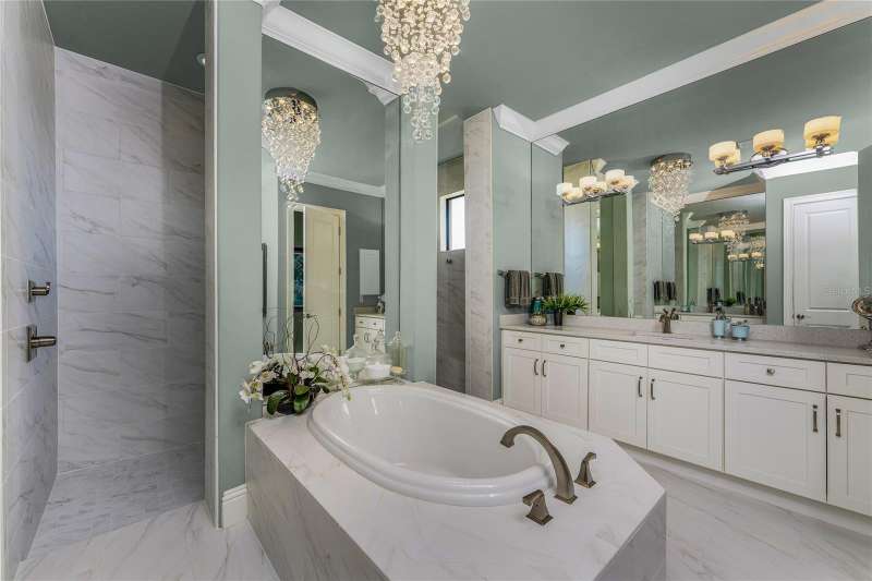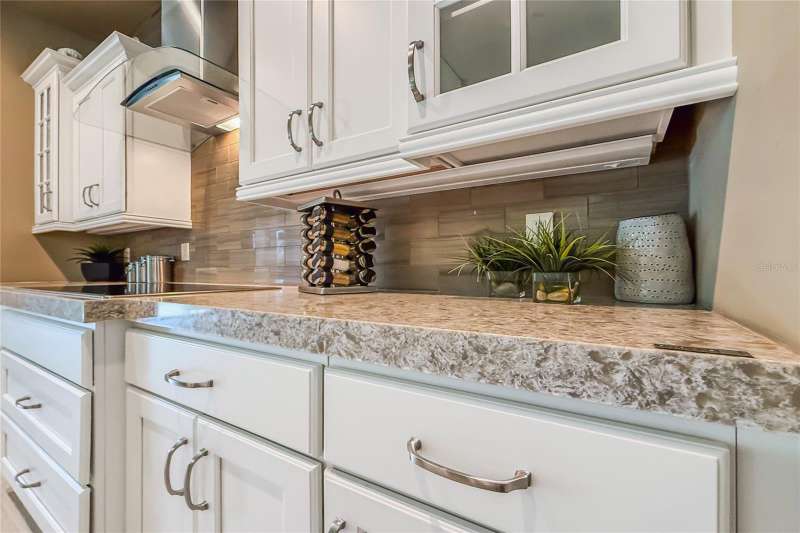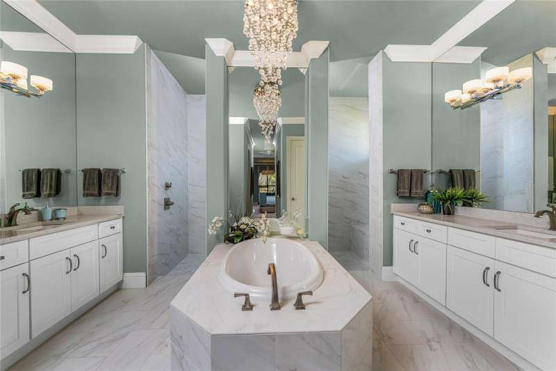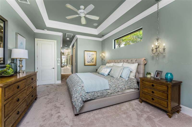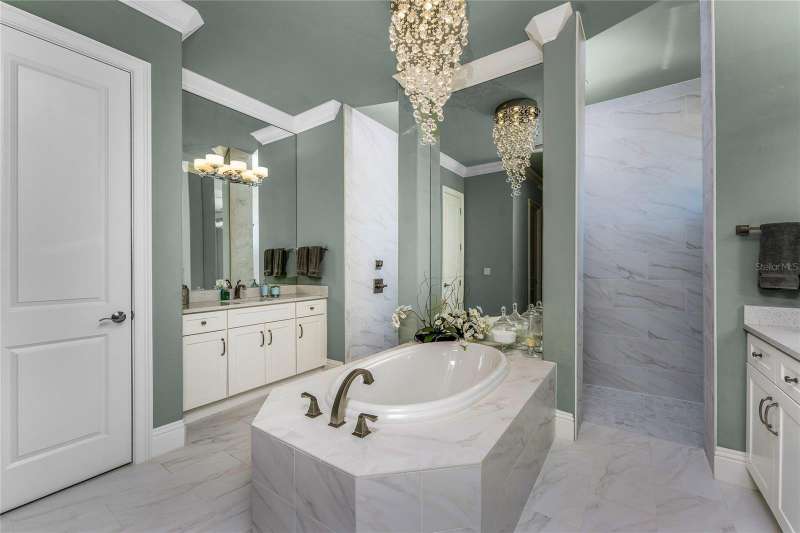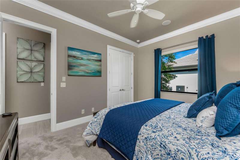BACK ON THE MARKET DUE TO BUYER DEFAULT - NOW AN OPPORTUNITY FOR YOU! Welcome to your dream home! This former builder's model, crafted by award-winning PGI Homes in 2014, blends comfort, style, & luxury. Offered turnkey furnished including items in the garage, this 3-bedroom, 2-bath home with an office spans 2,680 sq. ft. features an oversized lanai and pool area. A circular paver driveway with lush landscaping leads to an elegant double-door entry. Inside, soaring ceilings with crown molding, an open-concept design and abundant natural light highlight the beautifully furnished space. The great room features a coffered ceiling, while the dining room showcases a unique architectural ceiling. The gourmet kitchen boasts a large 3" edge Silestone quartz countertop with the center island seating for four, a striking tile backsplash, KitchenAid stainless steel appliances, an induction cooktop with a sleek hood, and ample storage in classic white cabinetry. The luxurious primary suite includes a sitting area, French doors to the pool, a tray ceiling, and elegant lighting. Two walk-in closets lead to a spa-like bath with a crystal chandelier, soaking tub, Roman shower with dual heads, and dual vanities with Silestone quartz counters. The guest wing offers two spacious bedrooms and a pool-access bath with custom tile and a glass-walled shower. A standout 3-car garage features wood flooring, crown molding, recessed lighting, and newly installed independent climate control ideal for vehicles or a home gym. BRAND NEW York 5 ton, 16.2 seer AC installed August 2025. Smart home features include a Z-Wave system, security cameras, & a Nuvo sound system with built-in speakers. Additional peace of mind comes with all impact windows and doors, plus electric Kevlar protection across the back lanai and a 2023 stone-coated metal roof. Disappearing sliders open to a wood-ceilinged lanai, summer kitchen, and wall-mounted TV. The expansive travertine pool deck boasts a heated pool with fountains, a sun platform, a submerged granite bar, and multiple lounging area all overlooking a gorgeous lake view. Close to Ponce de Leon Park and minutes to Fishermen's Village - THIS IS YOUR DREAM HOME!