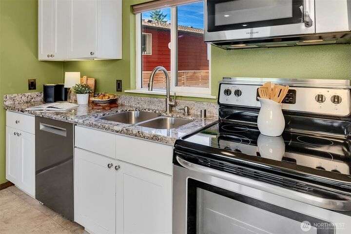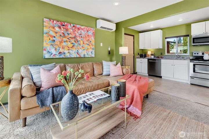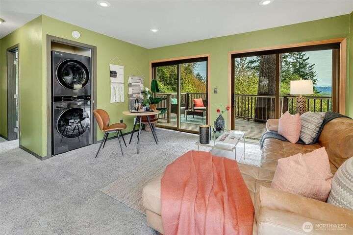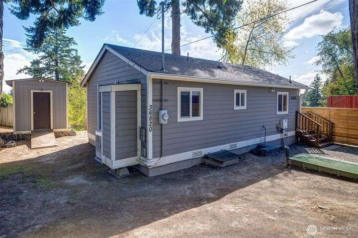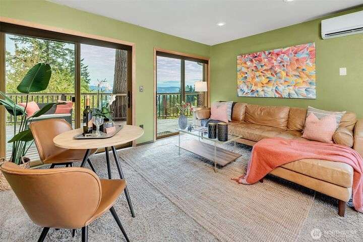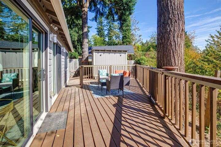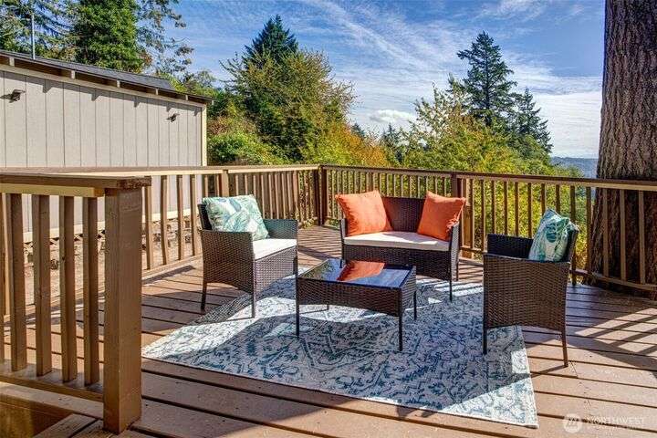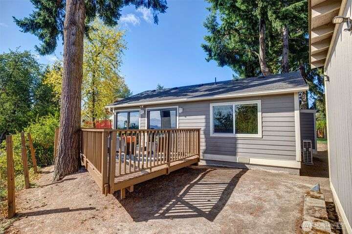 Super modern, pin-tight, and yes-it-is-adorable urban cottage in an enchanting setting shared with Mt. Rainier and the Cascades. Completely rebuilt inside & out in 2005: All new siding, windows/doors, plumbing & electric, appliances, the works! Since 2014: New roof, state-of-the-art minisplit heat & A/C, new major septic updates. All this ultraefficient living is tucked away on a private fenced & gated 1/2acre lot. Open living spaces are full of light and sky, window-walls/doors have seamless access to view decks for major outdoor living & entertaining. Ezy commute & daily routine location, so perfect for low-maintenance lock&go living. OR:1.Kick off shoes. 2. Go straight to the deck. 3. Breathe deep. 4. It’s Just you & your mountain.