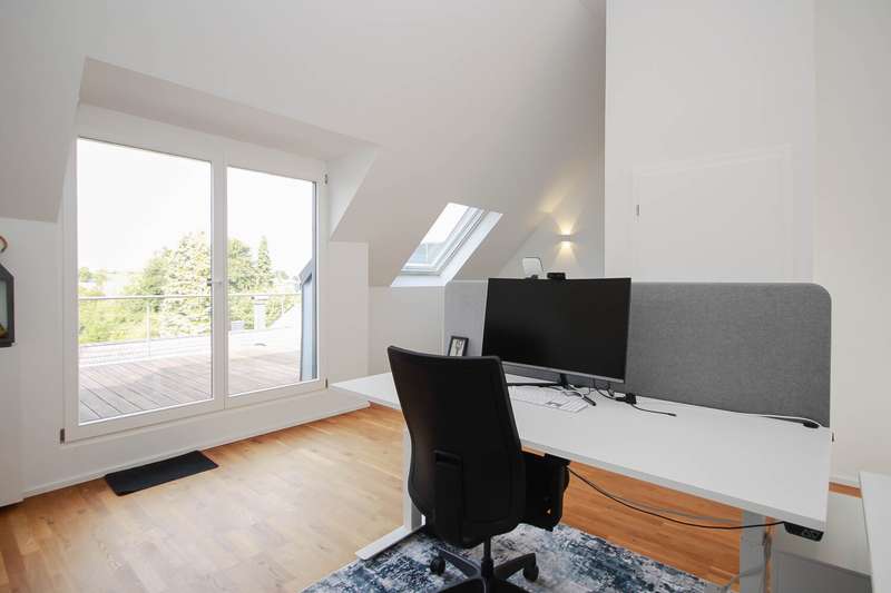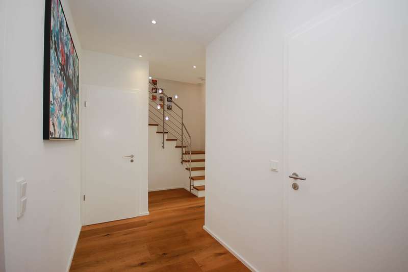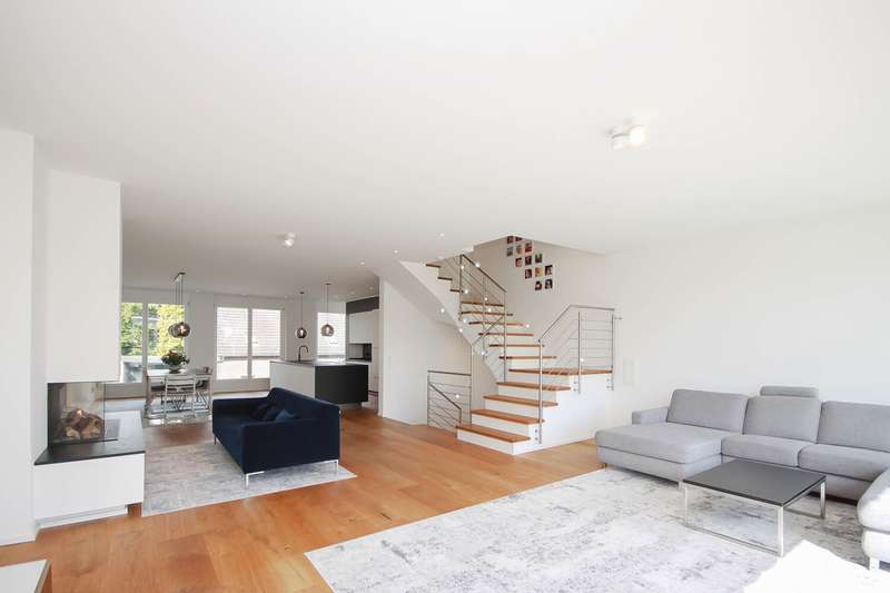 Welcome to your new home: This stylish detached house built in 2021 impresses with its modern architecture and excellent fittings. On a plot of around 378 m², the house offers a living space of around 280 m² - ideal for families or discerning couples who appreciate comfort, design and functionality. Even the entrance area impresses with a spacious entrance hall and a custom-made wardrobe that stylishly creates order. On the first floor, you will find an elegant guest WC with shower, a fully equipped barbecue kitchen, a fitness room and a large terrace with direct access to the well-tended garden including a garden shed. The open-plan living and dining area and a large kitchen are located on the second floor. This floor forms the heart of the house. Large windows create a bright and inviting atmosphere and open up views of the grounds belonging to the house. On the second floor are the master bedroom and the children's bedroom as well as a large dressing room, which can also be used as an additional bedroom if required. There are also two large bathrooms with high-quality fittings on this floor. On the top floor, there are two bright study/bedrooms and a sunny roof terrace - ideal for productive home office work. The property is equipped with underfloor heating, which provides pleasant warmth in all rooms. High-quality floor coverings and a well thought-out room layout make living here pleasant and comfortable. Another advantage of this property is its location. The detached house is located in a quiet residential area with a pleasant neighborhood and good infrastructure. Shopping facilities, schools, nurseries and public transport links are just a few minutes away, making everyday life much easier. Built in 2021, everything is state of the art - from the building services to energy efficiency. The building meets all the requirements for modern, comfortable living and combines functionality with high-quality construction. The offer is rounded off by a practical garage parking space with direct access to the house Please contact us for further information or to arrange a personal viewing. Take a look at our Instagram page "vonpoll_duesseldorf". There you will find more exciting real estate offers and are always up to date.