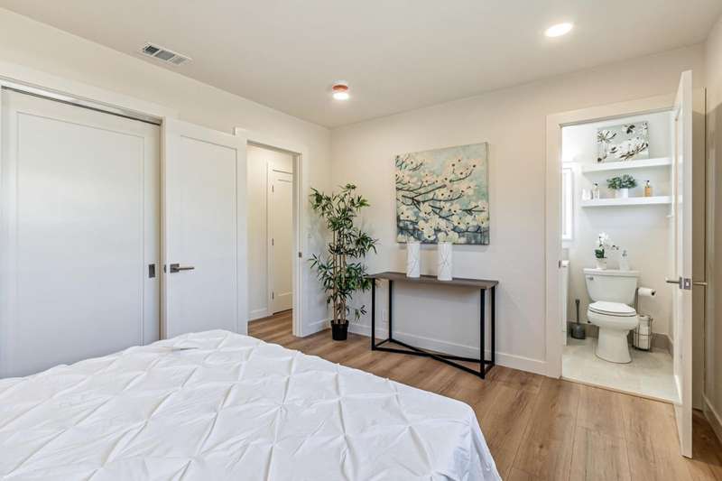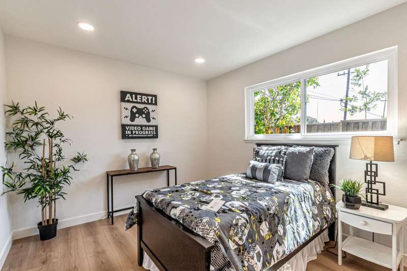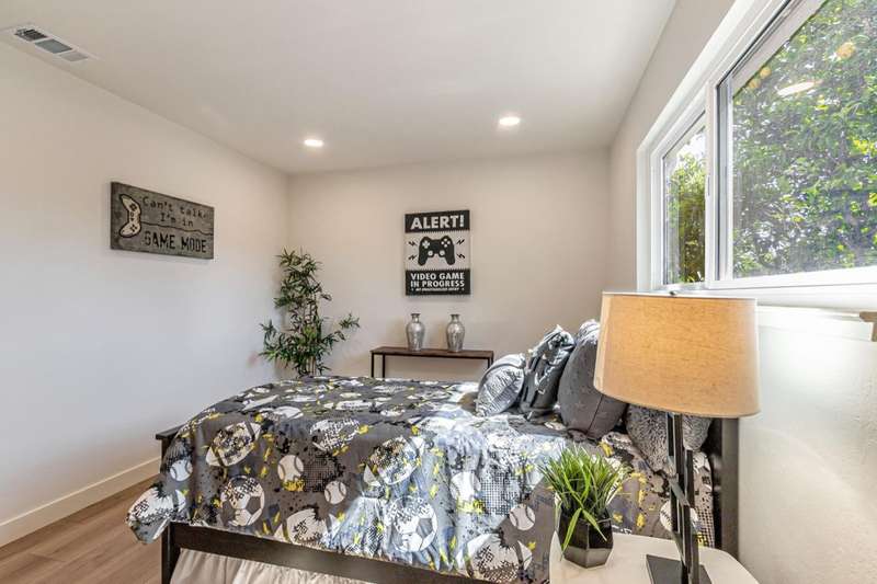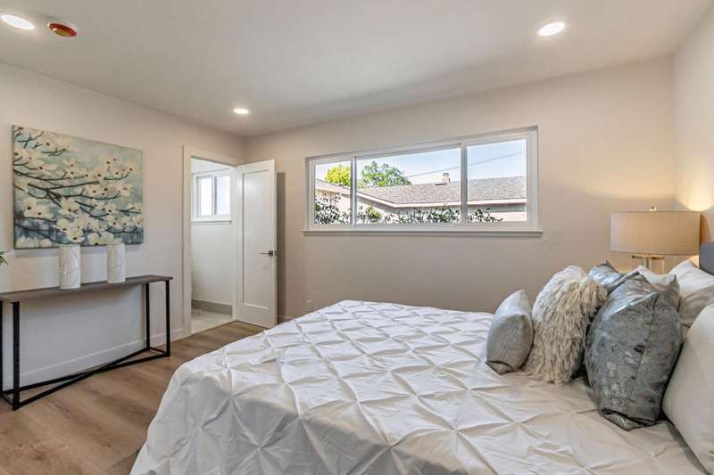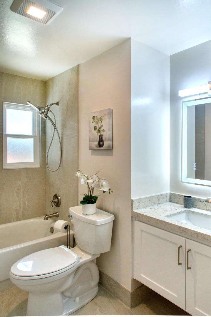 Stunning fully remodeled single-story home in San Joses desirable 95118 neighborhood. This 3-bedroom, 2-bathroom home offers approx. 1,359 sq ft of living space, a 2-car garage, and sits on a ~5,955 sq ft lot (~6,600 sq ft usable). Thoughtfully updated throughout with modern finishes and long-term system upgrades. Improvements include a new roof by Clean Roofing with Malarkey Coastal Gray shingles (3M smog-reducing granules), new concrete driveway, high-efficiency 3-ton York HVAC system with upgraded ducting and Wi-Fi thermostat, and updated water and drain lines. Interior upgrades: custom Shaker cabinetry, Tallavide Quartz counters, Highland Lake Snow tile, Thompson waterproof laminate flooring (Kodiak), and Milgard windows/doors. Kitchen features GE Profile oven/microwave, Frigidaire induction cooktop, Zephyr hood, GE dishwasher, and Blanco sink. Bathrooms include LED Callsky mirrors and Stonehenge Ivory tile. New drywall, fresh paint, LED lighting, and newer garage door opener. Backyard offers mature fruit trees and heritage roses. Termite fumigation and subterranean treatment complete. Move-in ready!