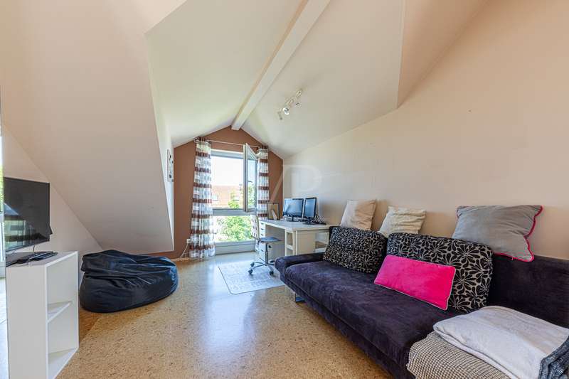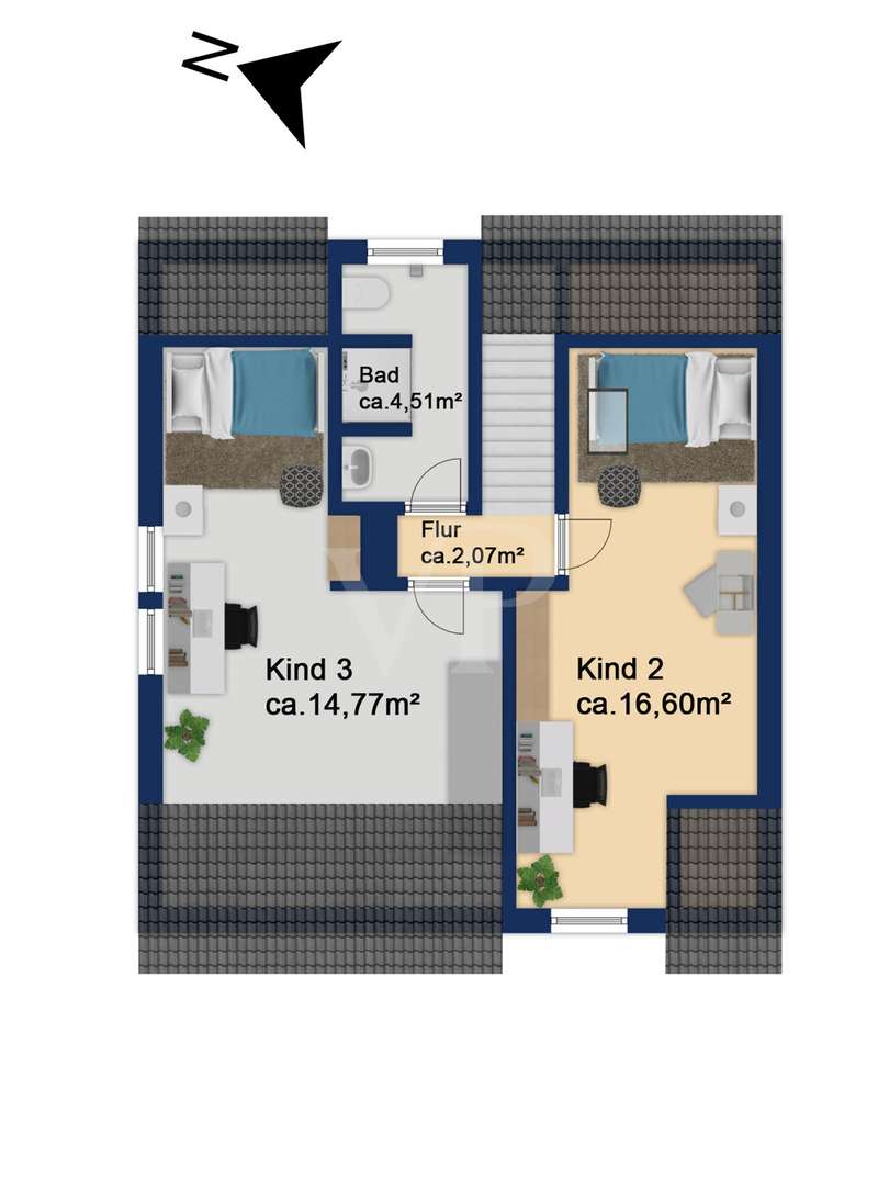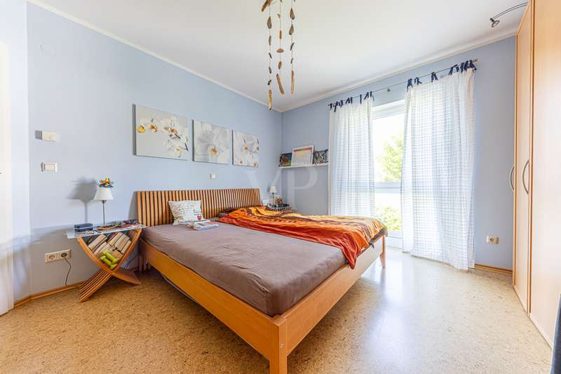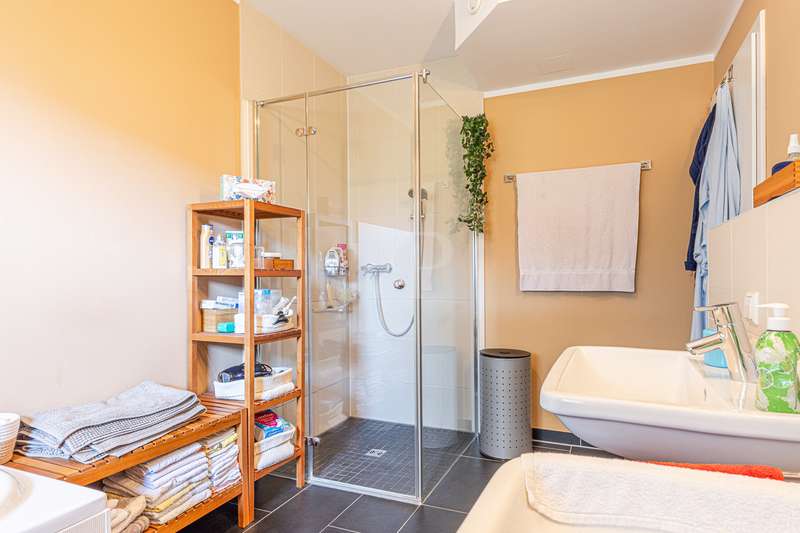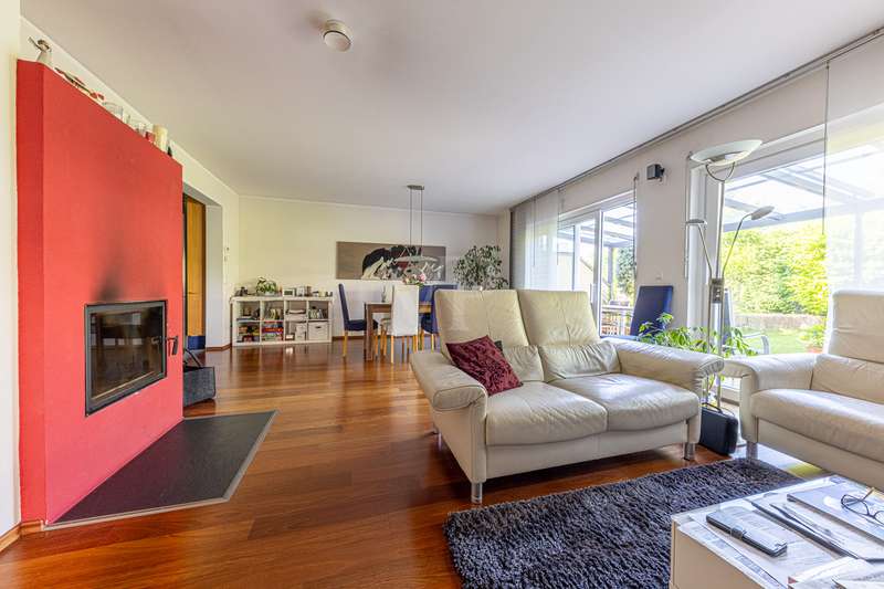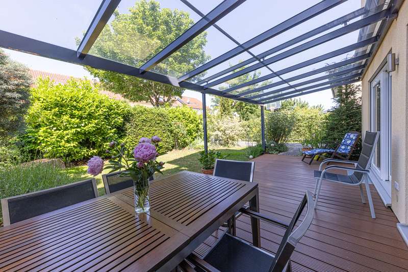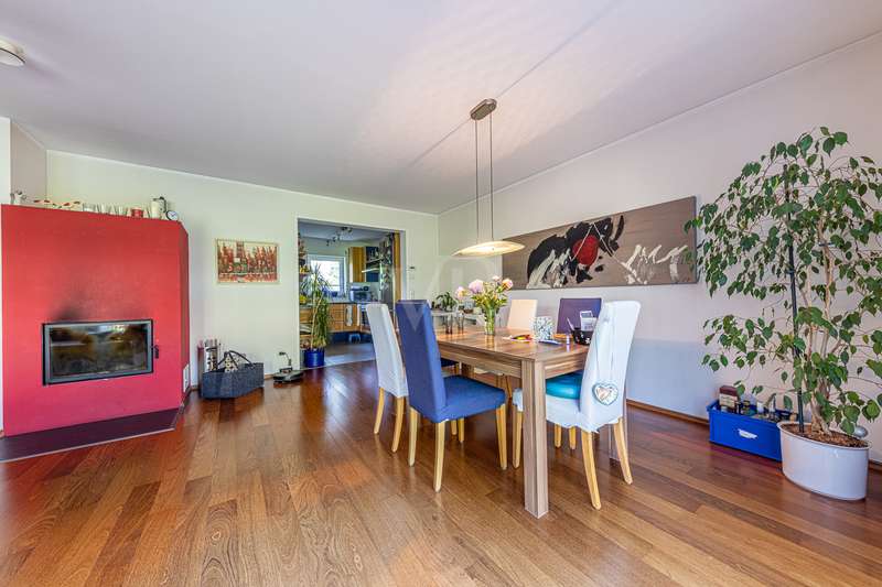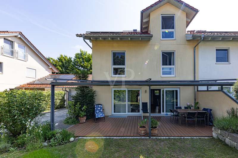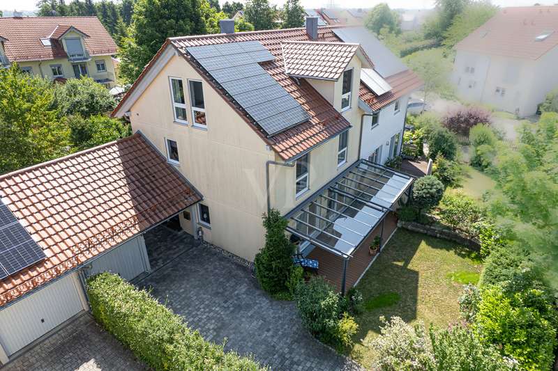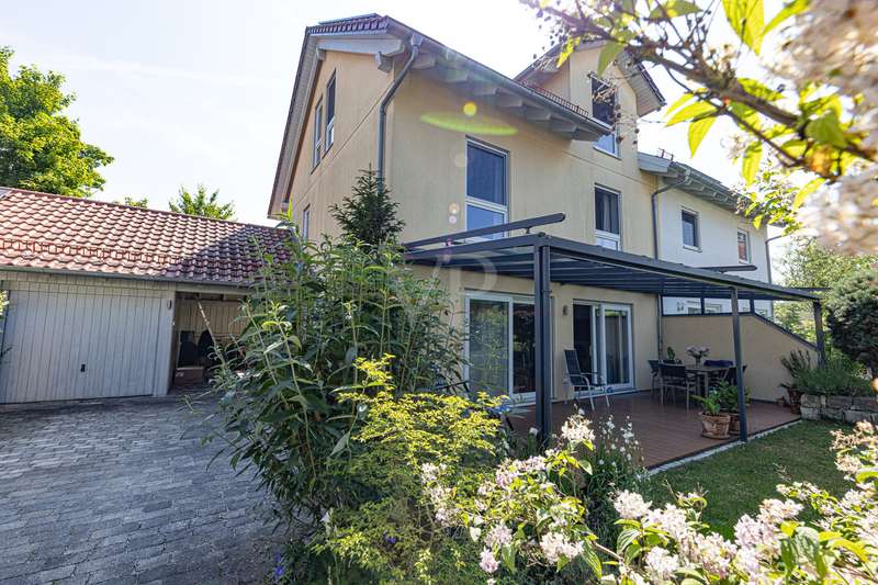 Welcome to your new home. A place full of light, spacious rooms and loving details that combines modern living comfort with sustainable energy efficiency. Everything you need for a harmonious family life awaits you here, a place where you can grow, laugh and make memories together. On the first floor, a stylish, open-plan living and dining area opens up, combining warmth and elegance with fine real wood veneer parquet flooring and a cozy wood-burning stove. People play, laugh, eat and relax in this central heart of the house. Generous sliding glass doors open onto a covered terrace with an elegant glass roof and electrically controlled awnings, ideal for lively barbecue evenings or quiet moments in the open air. Upstairs, you will find a comfortable family bathroom with a walk-in shower, bathtub and two washbasins, ensuring a relaxed start to every day. The spacious master bedroom promises restful nights, while the children's room offers a protected space for imagination and security. Another room serves as a quiet retreat for concentrated work, inspiring reading or creative projects. On this level too, the well thought-out architecture ensures a bright, friendly living atmosphere. There are two further children's rooms on the top floor, which create little oases of well-being with their mixture of light and cozy sloping ceilings. They are perfect for creative hours, concentrated study and quiet breaks. A private bathroom rounds off the comfort here too, making it easy to cope with the morning rush. The basement opens up a spacious hobby room that can be designed entirely according to your wishes. Whether as a games paradise, home cinema, fitness area or studio, everyone will find their own personal favorite spot here. This level is complemented by a practical storage room and a separate utility room that discreetly houses the modern building services. This home is rounded off by a single garage, a carport and an additional outdoor parking space. An efficient heat pump in combination with a powerful photovoltaic system ensures a sustainable energy concept that protects both the environment and your budget and raises living comfort to a new level. This semi-detached house is far more than just four walls. It is a place full of warmth, openness and light, where everyone finds their place and enriches family life in a special way