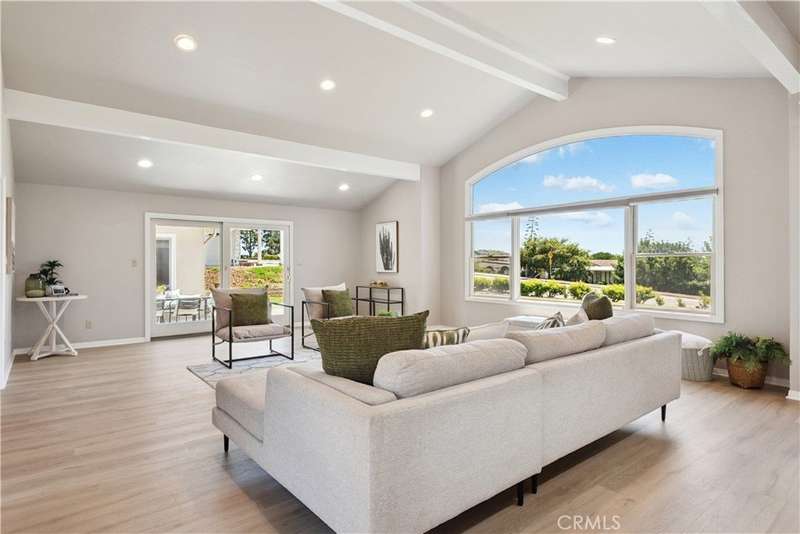 Experience coastal living in this beautifully maintained single level home that has 2,570 sq ft of living space on a spacious 12,361 square foot flat lot. The expansive yard is ideal for entertaining, outdoor activities, or family fun. Featuring stunning ocean vistas, this cozy and inviting residence offers the perfect blend of comfort and scenic beauty. Inside, you'll find an open floor plan, updated modern kitchen, dual-pane windows, and spacious, light-filled living areas that create a warm and welcoming atmosphere. Located on a quiet cul-de-sac street, this charming home is a perfect sanctuary for relaxing and entertaining in style! Don’t miss out on the fabulous opportunity!